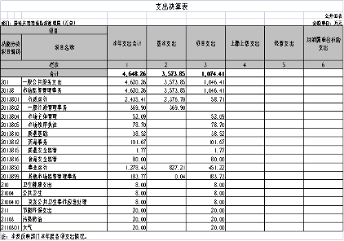 (一) 机构设置情况。根据部门职责,我局设置3个财政预算单位,其中:市市场监督管理局为一级财政预算单位,市产品质量计量和特种设备检验检测中心、市食品药品和医疗器械检验检测中心分别为二级财政全额事业预算单位。