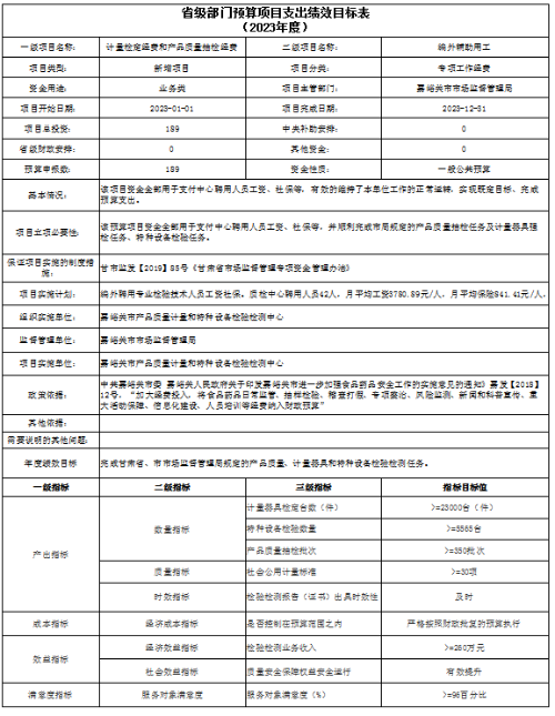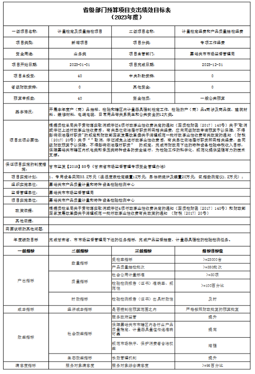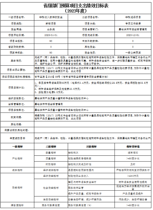 2.嘉峪关市产品质量计量和特种设备检验检测中心 2023年预算整体及项目绩效目标表