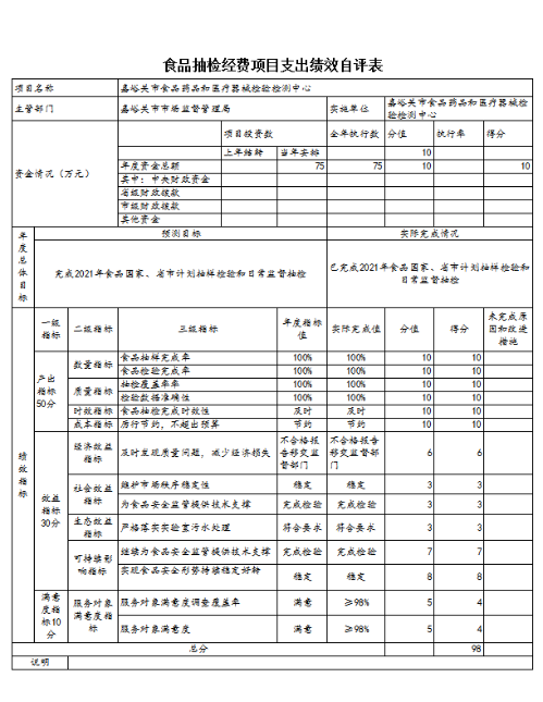 附件1:项目支出绩效自评表(食品抽检项目经费)