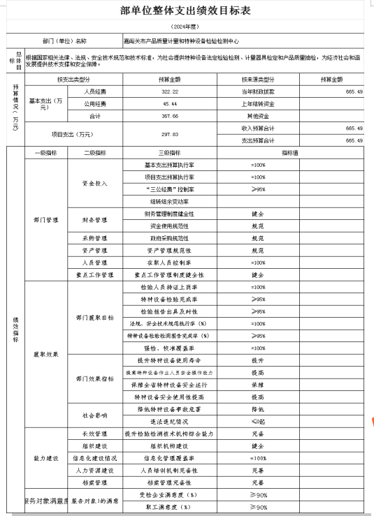 嘉峪关市产品质量计量和特种设备检验检测中心2024年单位预算公开情况说明