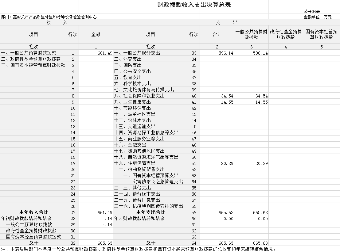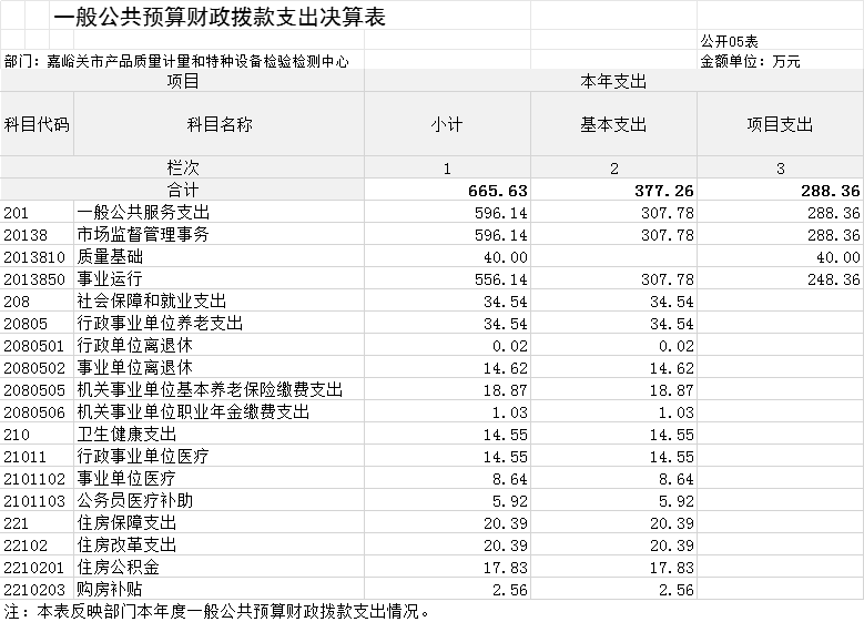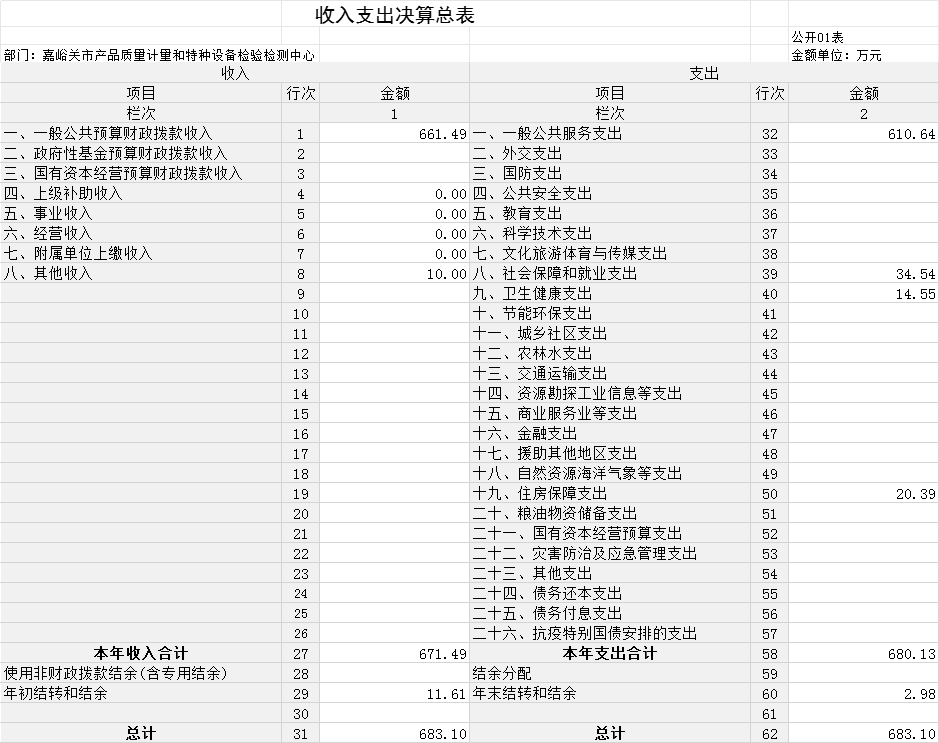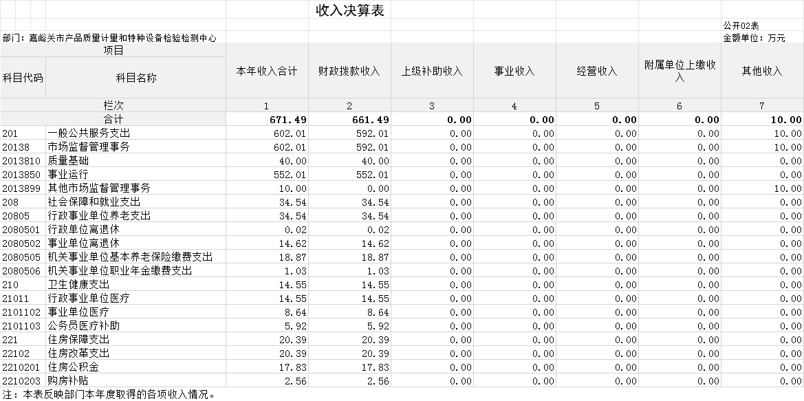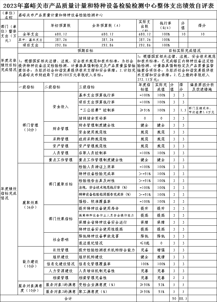 2023年度嘉峪关市产品质量计量和特种设备检验检测中心部门决算
