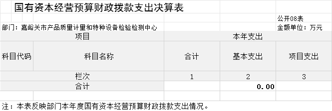 八、国有资本经营预算财政拨款支出决算表(本表无数据)