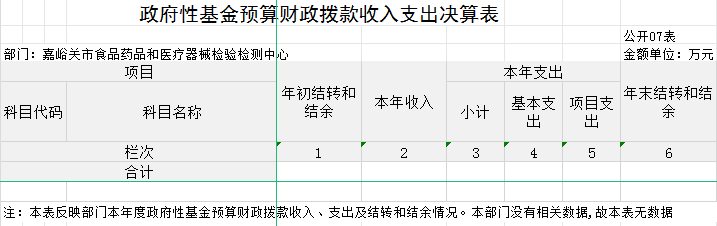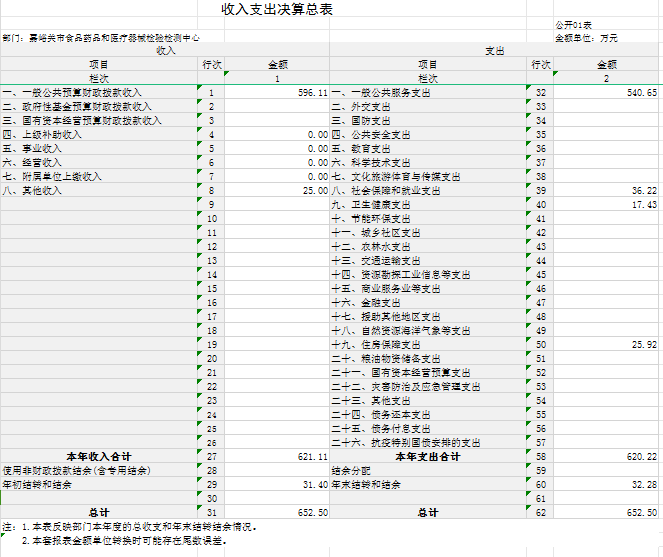 嘉峪关市食品药品和医疗器械检验检测中心部门决算