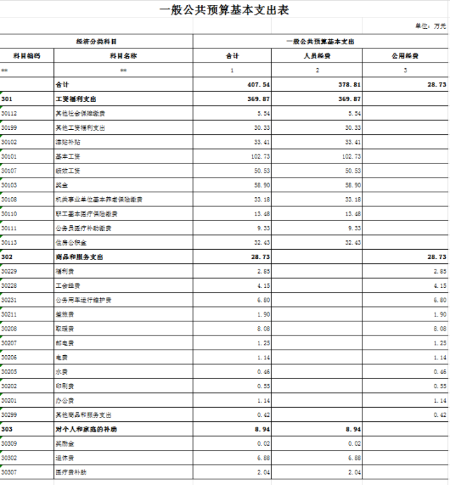 2025年基本支出407.54万元,比2024年预算增加5.47万元,增长1.36 %,增长的主要原因是在职人员工资调整,相应的人员经费增加。