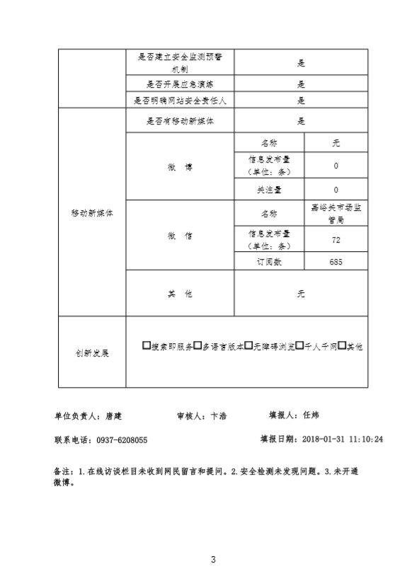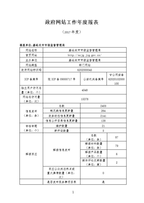 嘉峪关市市场监督管理局2017年度政府网站年度工作报表