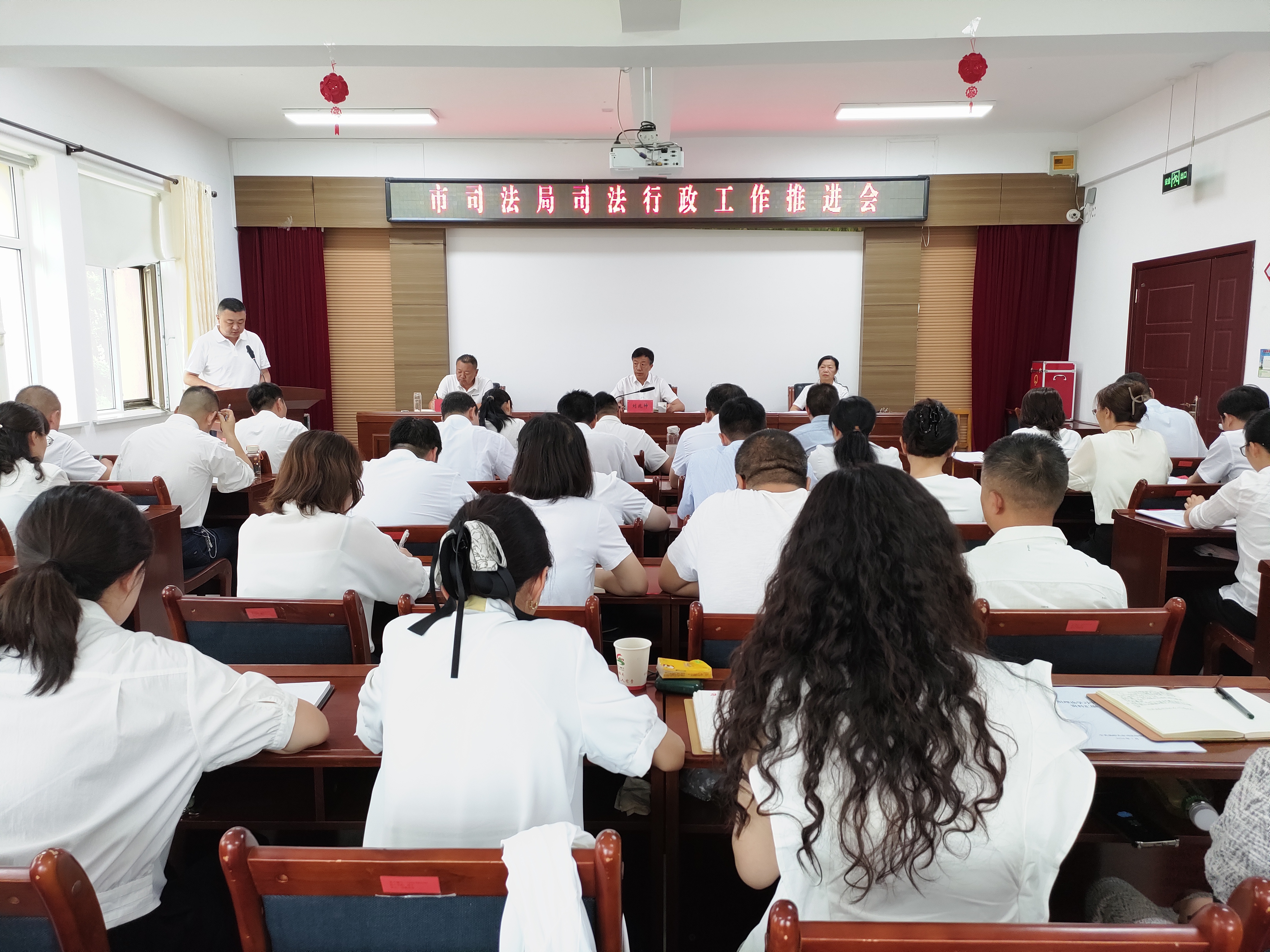 7月23日,嘉峪关市司法局召开司法行政工作推进会,传达学习全省政法领导干部专题研讨班精神,全面总结今年以来各项工作,研究部署下一阶段重点任务,局党组书记、局长刘兆坤主持会议并讲话,局领导,局属各单位负责人,全体干部职工参加会议。