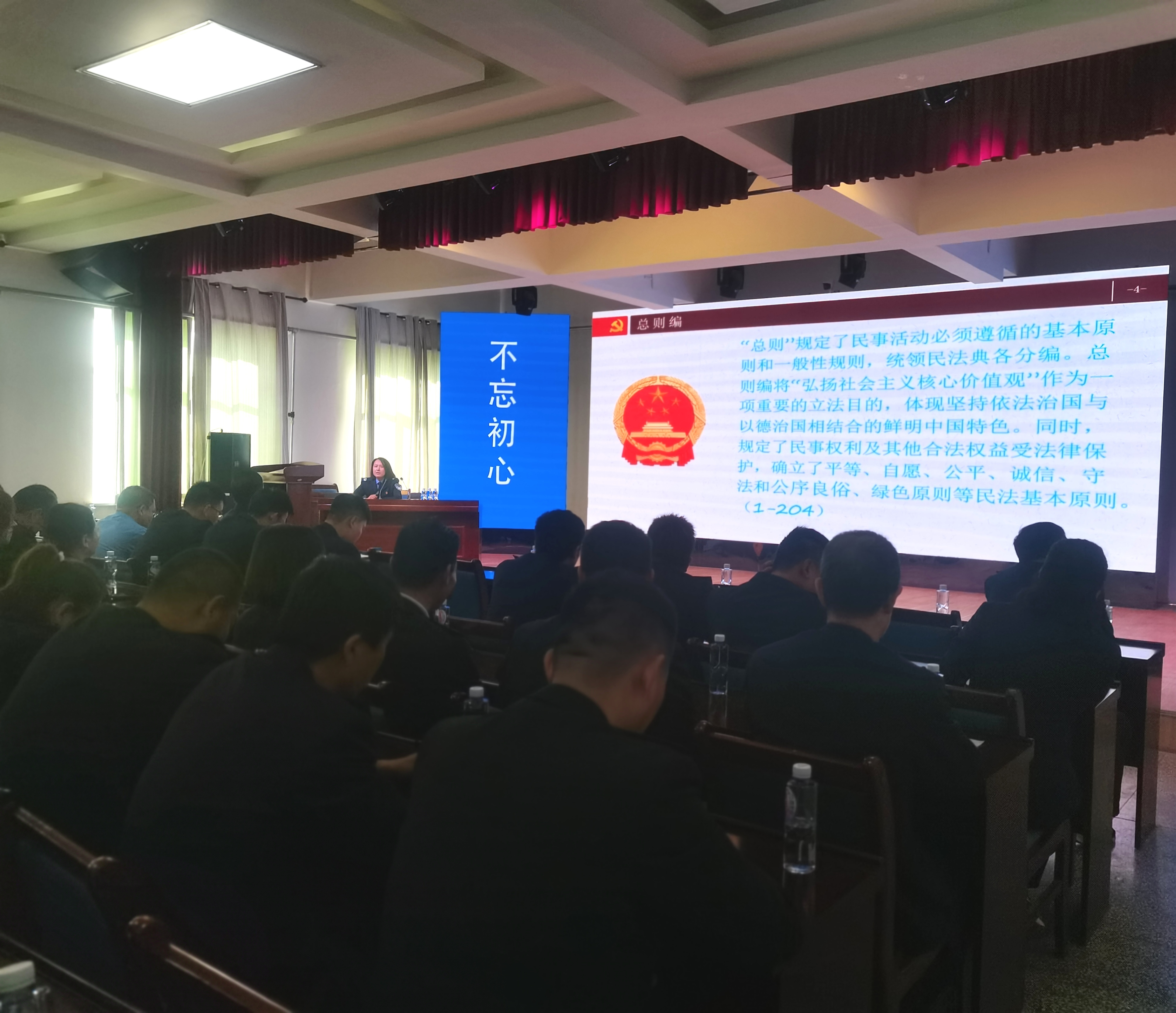 讲座中,司法所工作人员深入浅出地解读了《民法典》地位及重大意义,结合“给你500万,离开你老公”的典型案例分析讲解了公序良俗等基本原则。针对年轻干部职工居多情况,重点讲解了婚姻家庭编,通过“相互有继承关系的人在同一时间死亡的怎么办?”的问题,贯穿讲解了继承编。
