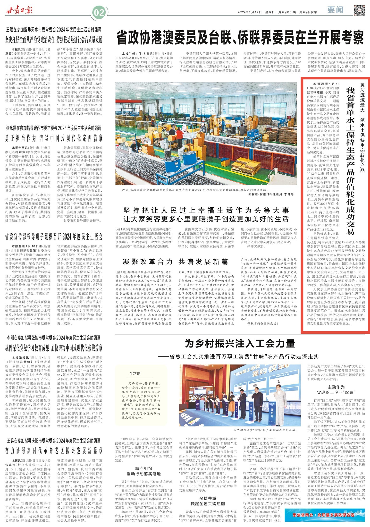 【甘肃日报】甘肃省首单水土保持生态产品价值转化成功交易