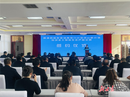 新甘肃客户端通渭1月18日讯(新甘肃·甘肃日报记者 张燕茹)今天下午,甘肃省首单水土保持生态产品价值转化交易——通渭县常家河镇南河川小流域山楂小镇区块水土保持生态产品交易在定西市通渭县成功签约。本次水土保持生态产品交易额达1.1056亿元,交易内容最为全面,包括供给产品、调节服务和文化服务三类生态产品,是目前黄河流域最大一笔水土保持生态产品转化交易。