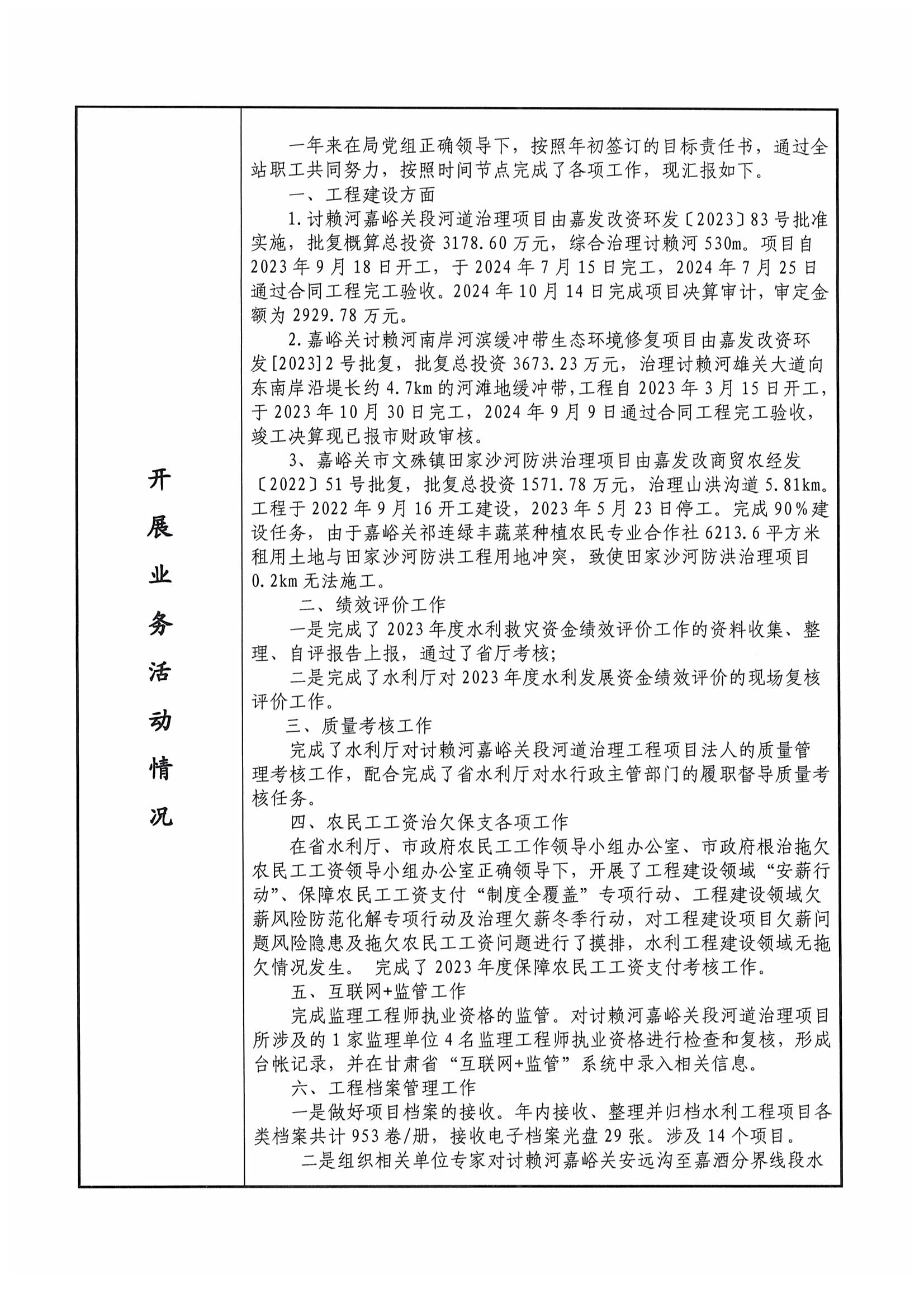 嘉峪关市水利建设管理站2024年度事业单位法人年度报告书