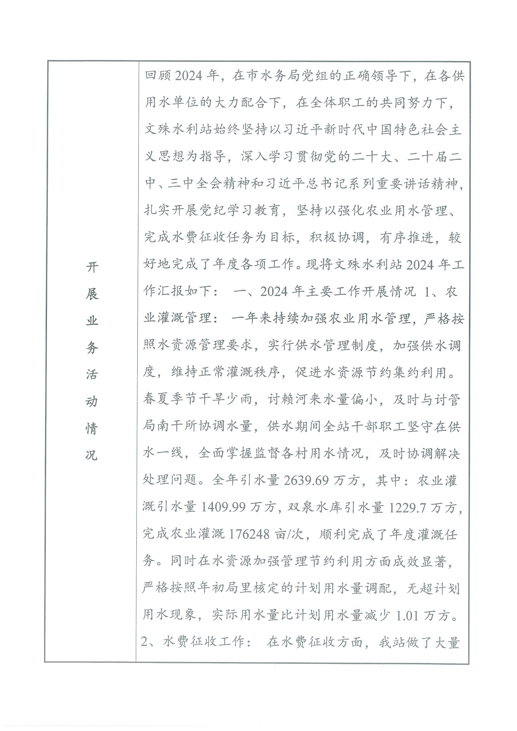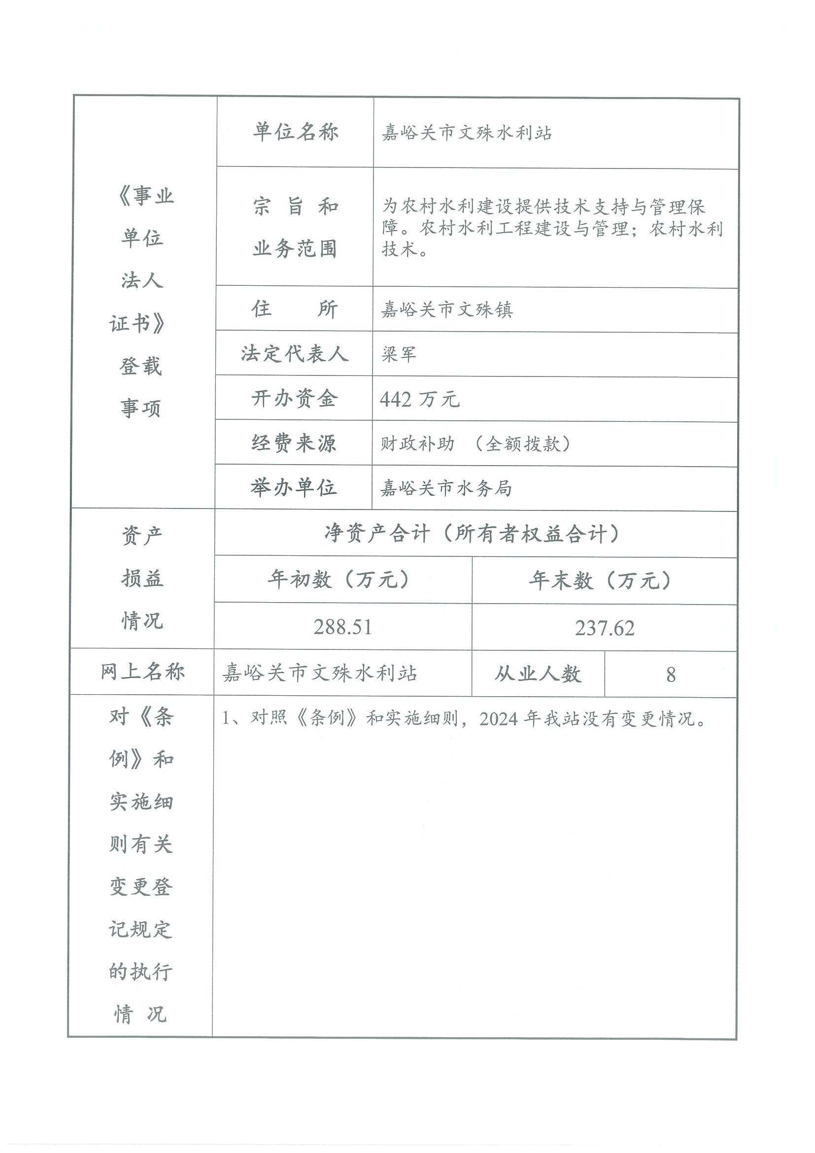 嘉峪关市文殊水利站2024年度事业单位法人年度报告书