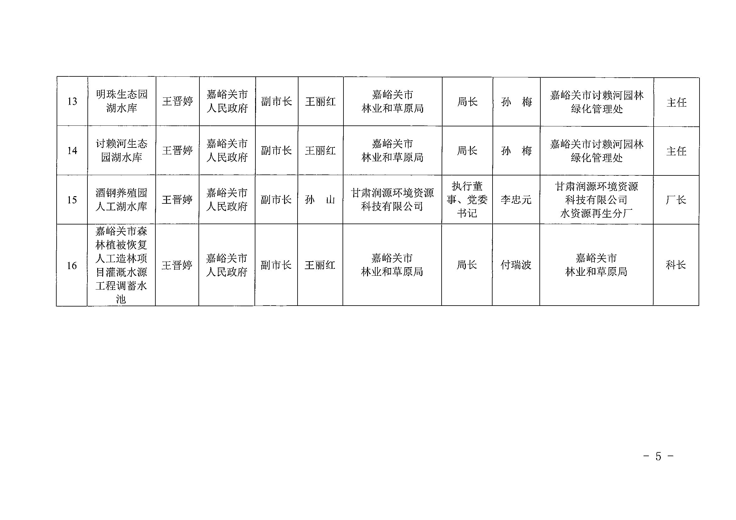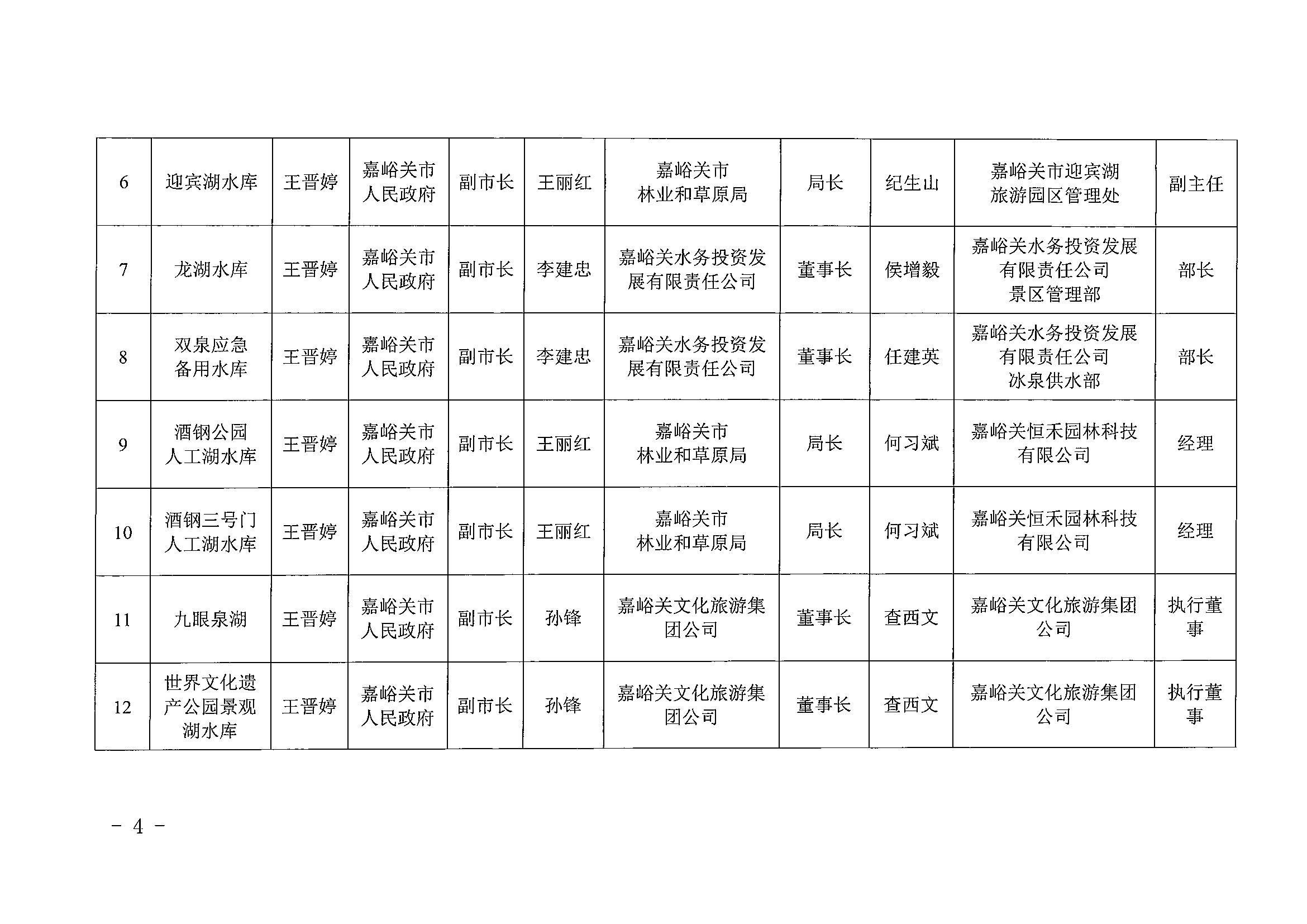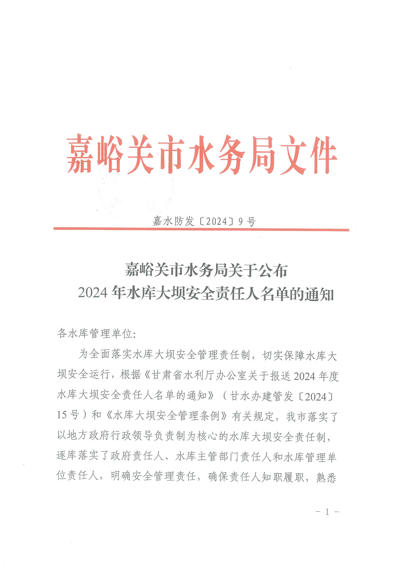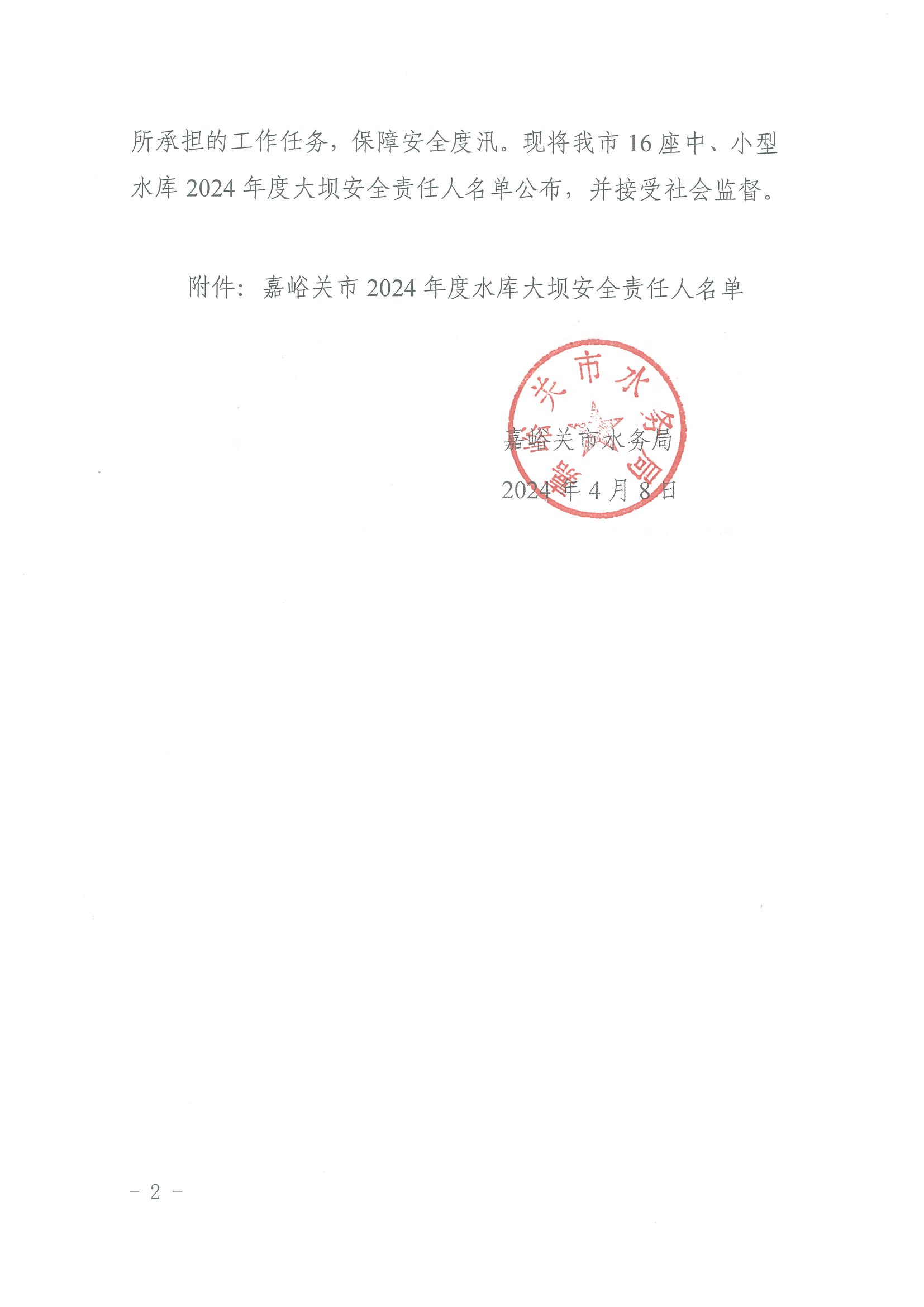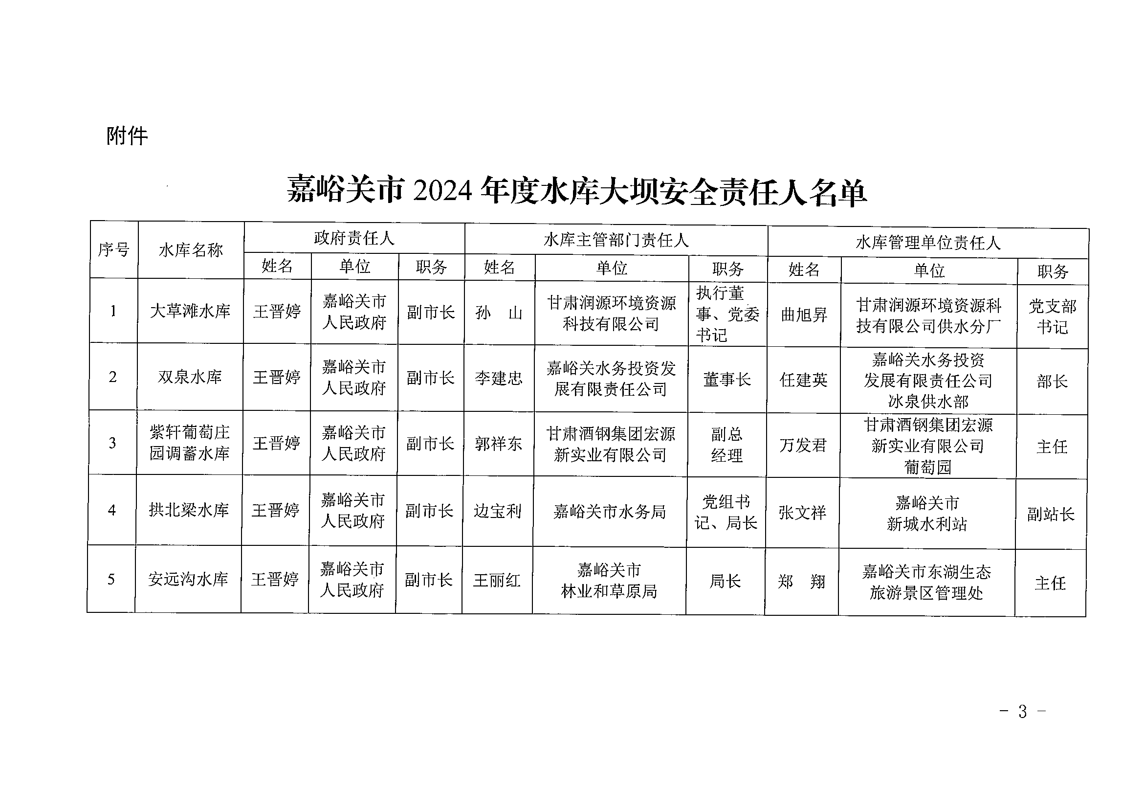 嘉峪关市水务局关于公布2024年水库大坝安全责任人名单的通知