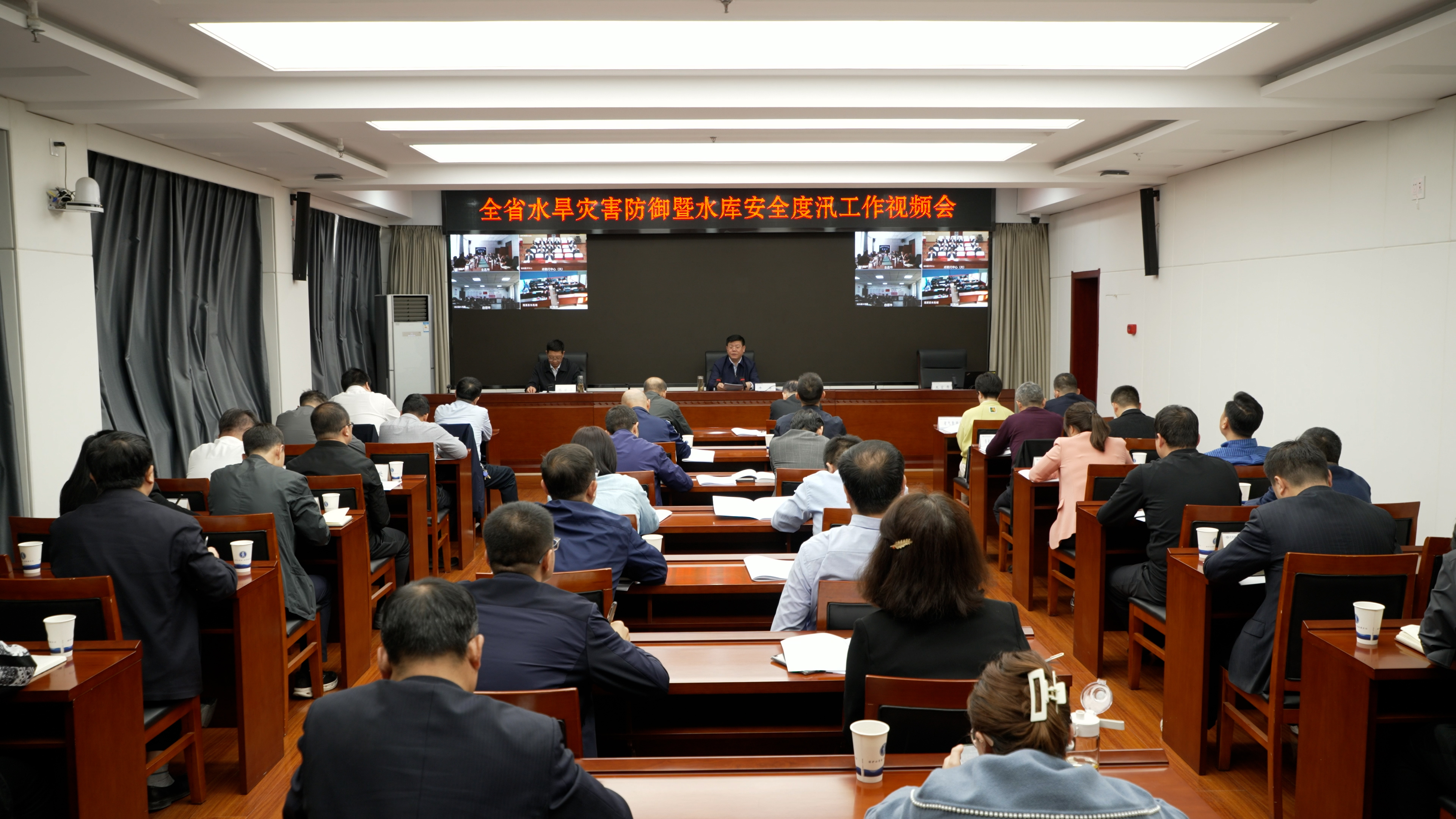 会议以视频形式召开,省应急厅、省气象局,国家电网甘肃省电力公司等7家水电站管理单位负责人、厅机关有关处室和厅属在兰有关单位负责人在主会场参会;厅属兰外单位,各市(州)、县(市、区)水务(水保)部门、兰州新区农林水务局共计1000余人在各分会场参会。