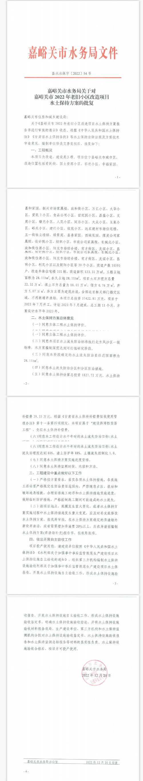嘉峪关市水务局关于对嘉峪关市2022年老旧小区改造项目水土保持方案的批复