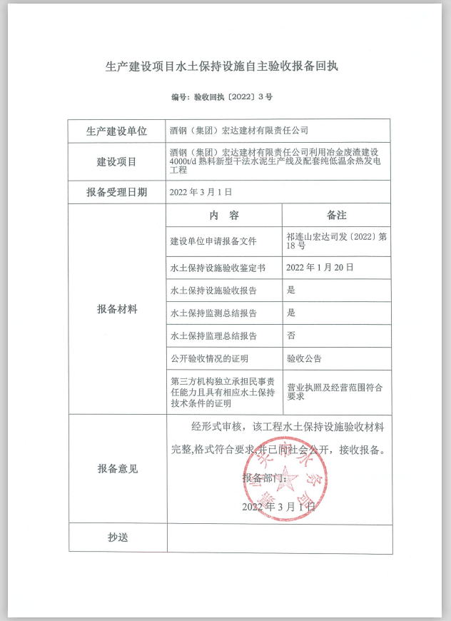 酒钢(集团)宏达建材有限责任公司利用冶金废渣建设4000t\d熟料新型干法水泥生产线及配套纯低温余热发电工程
