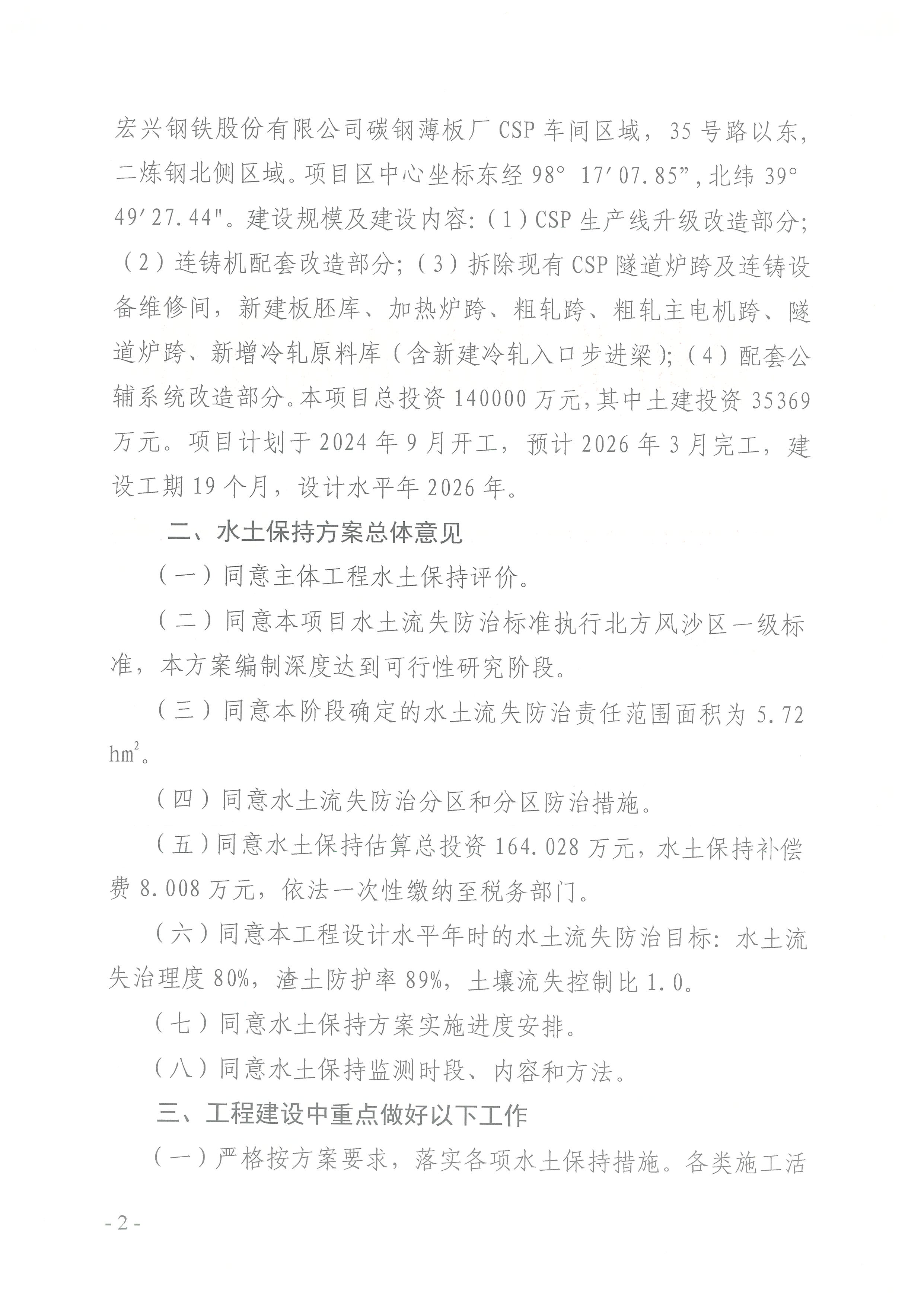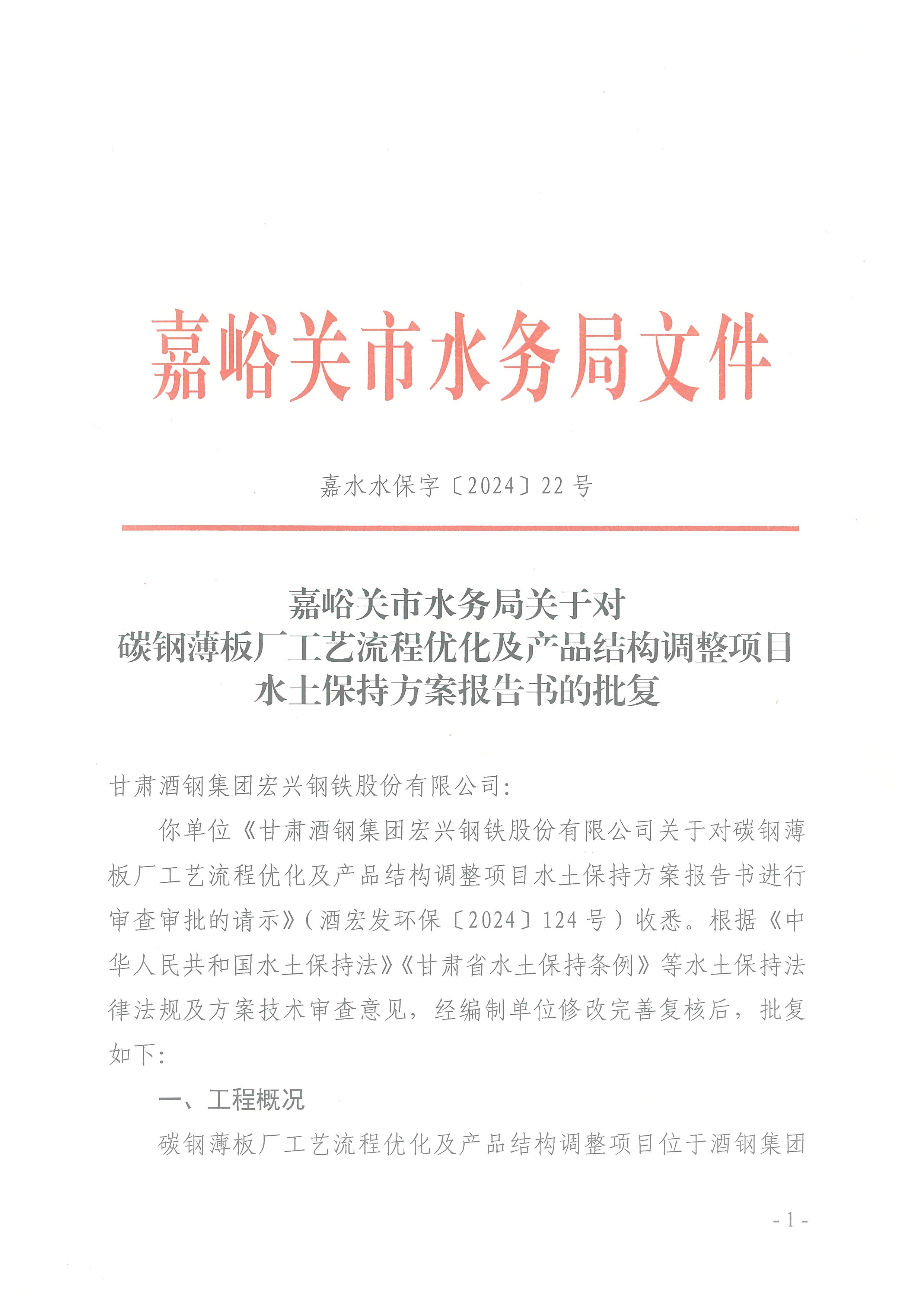 嘉峪关市水务局关于对碳钢薄板厂工艺流程优化及产品结构调整项目水土保持方案报告书的批复