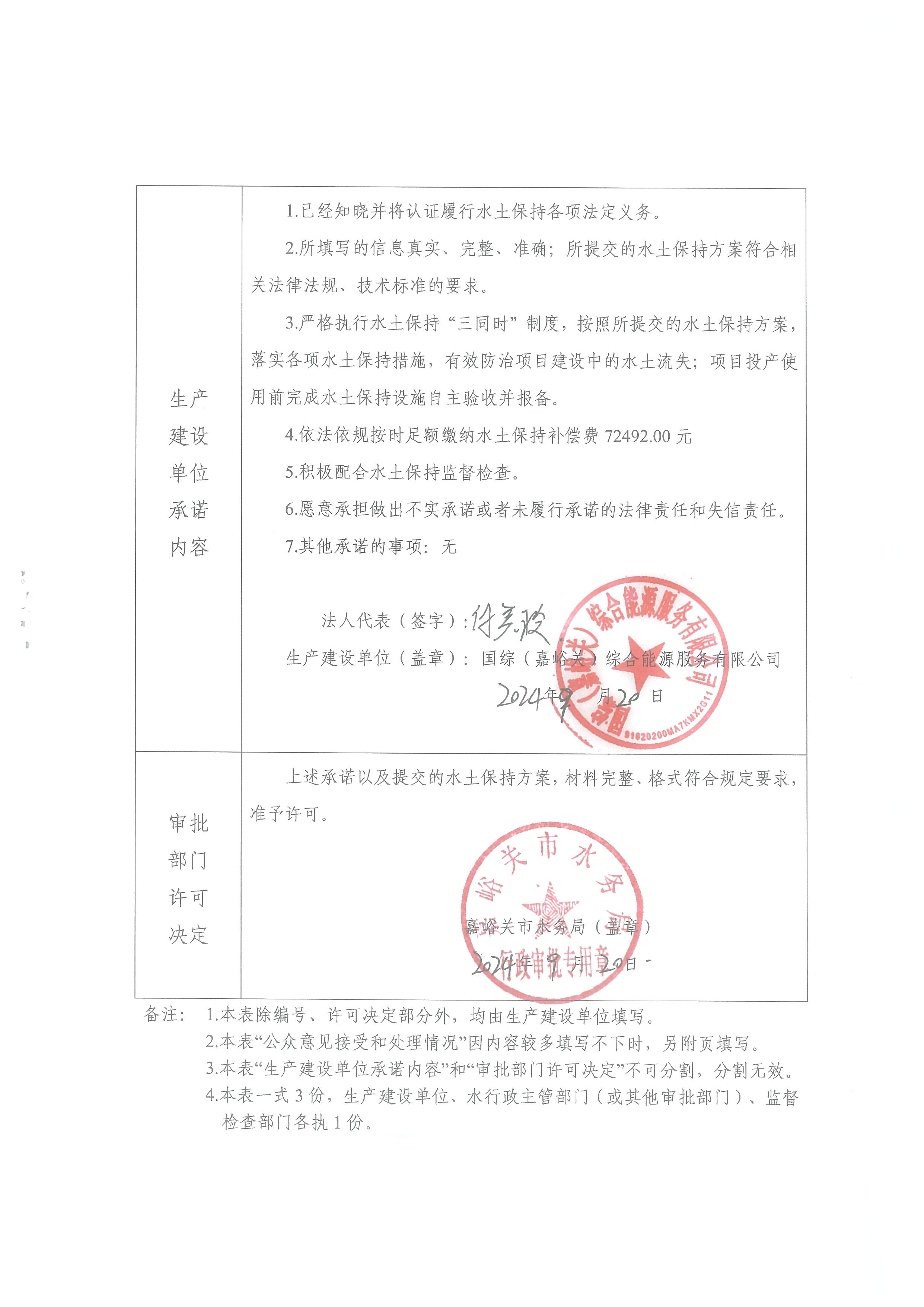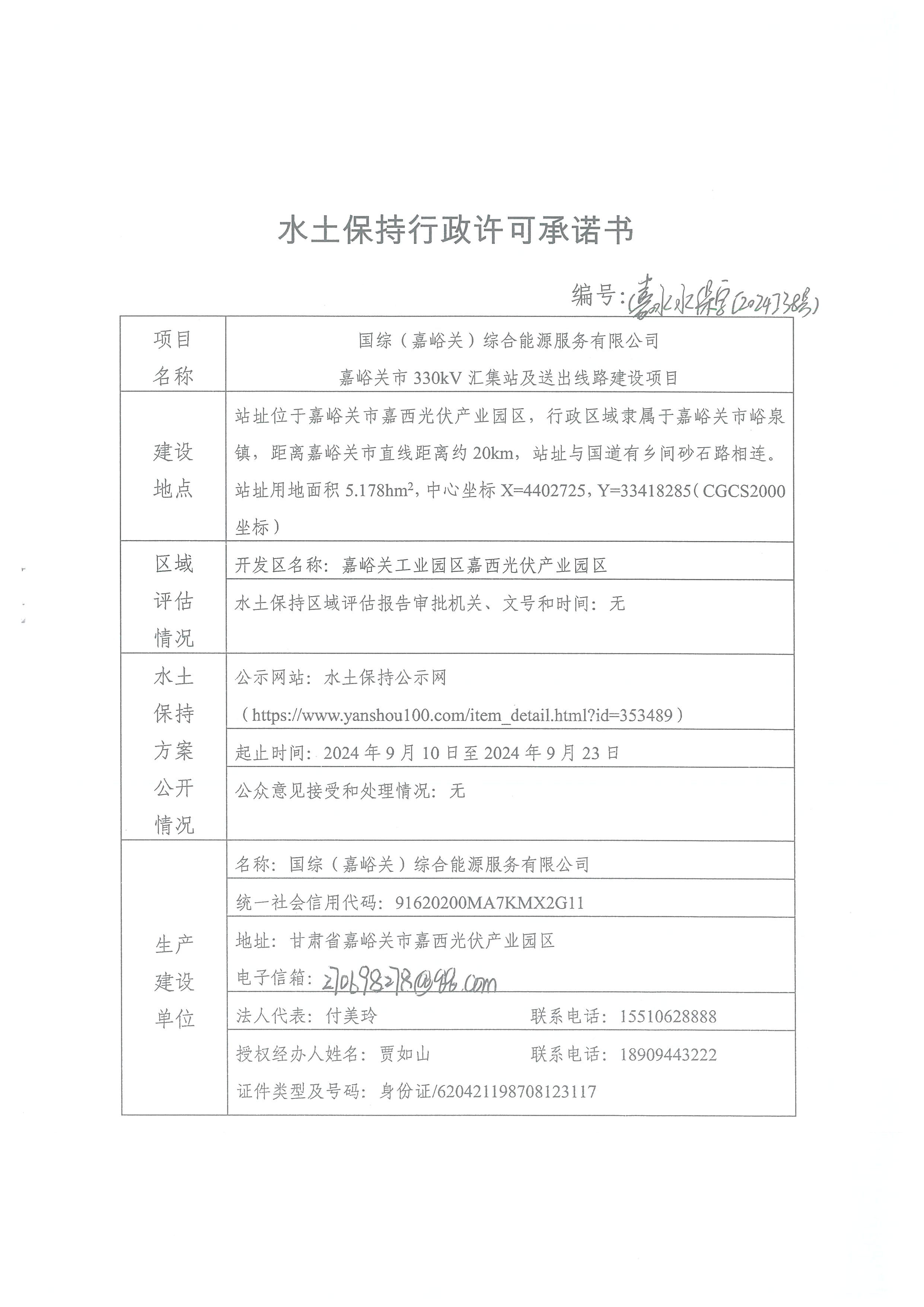 国综(嘉峪关)综合能源服务有限公司嘉峪关市330kV汇集站及送出线路建设项目水土保持行政许可承诺书