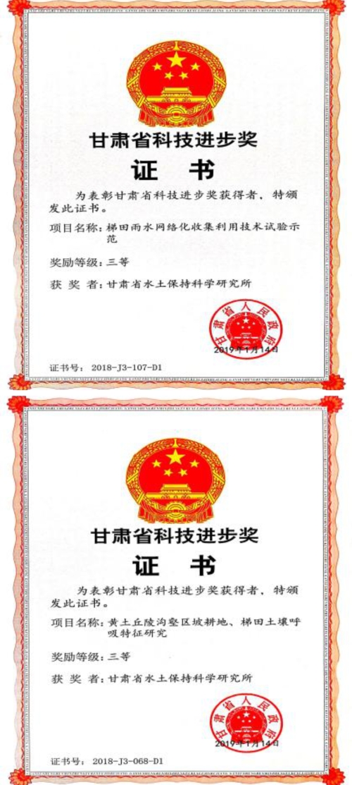 园区已形成较好的水土保持技术试验示范推广平台,野外、室内一体化的时空、过程机理、试验与模拟系统已初具规模。以园区为平台,仅2014年至2024年开展水土保持科学试验研究并获重要奖项的项目有39项,其中获得甘肃省科技进步二等奖1项、三等奖7项,获中国水土保持学会科学技术三等奖2项,获甘肃省水利厅科技进步一等奖18项。