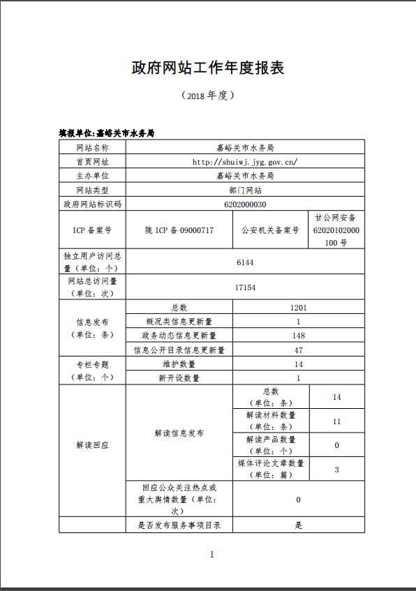嘉峪关市水务局政府网站工作年度报表