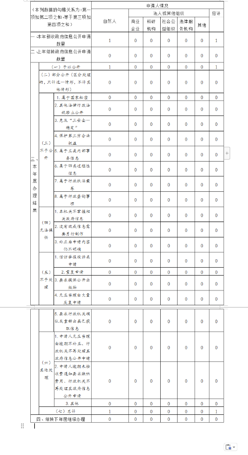 三、收到和处理政府信息公开申请情况