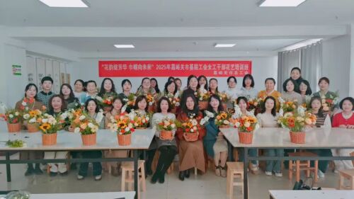 二是市审计局工会组织女职工赴市工人文化宫,参加市总工会举办的“花韵绽芳华 巾帼向未来”全市基层工会女工干部花艺培训班。本次花艺培训班邀请专业授课老师,采用 “理论 + 实操”双轨教学模式,从花材的选择、色彩的搭配、造型的设计以及枝叶的修剪等方面,深入浅出地讲解了插花艺术的技巧和要点。参训学员在老师指导下,完成从花材认知、色彩搭配到作品创作的全流程沉浸式体验,对女职工舒缓工作压力,提升生活格调和审美素养起到了积极作用。学员们纷纷表示,此次培训不仅掌握基础花艺技巧与理论知识,提升花艺设计与实际制作能力,更提升了艺术审美能力和创新思维。在感受花艺魅力的过程中释放了工作压力,放松了心情,提升了艺术气质,享受到了插花带来的乐趣,为今后的工作“加满了油”“打足了气”。