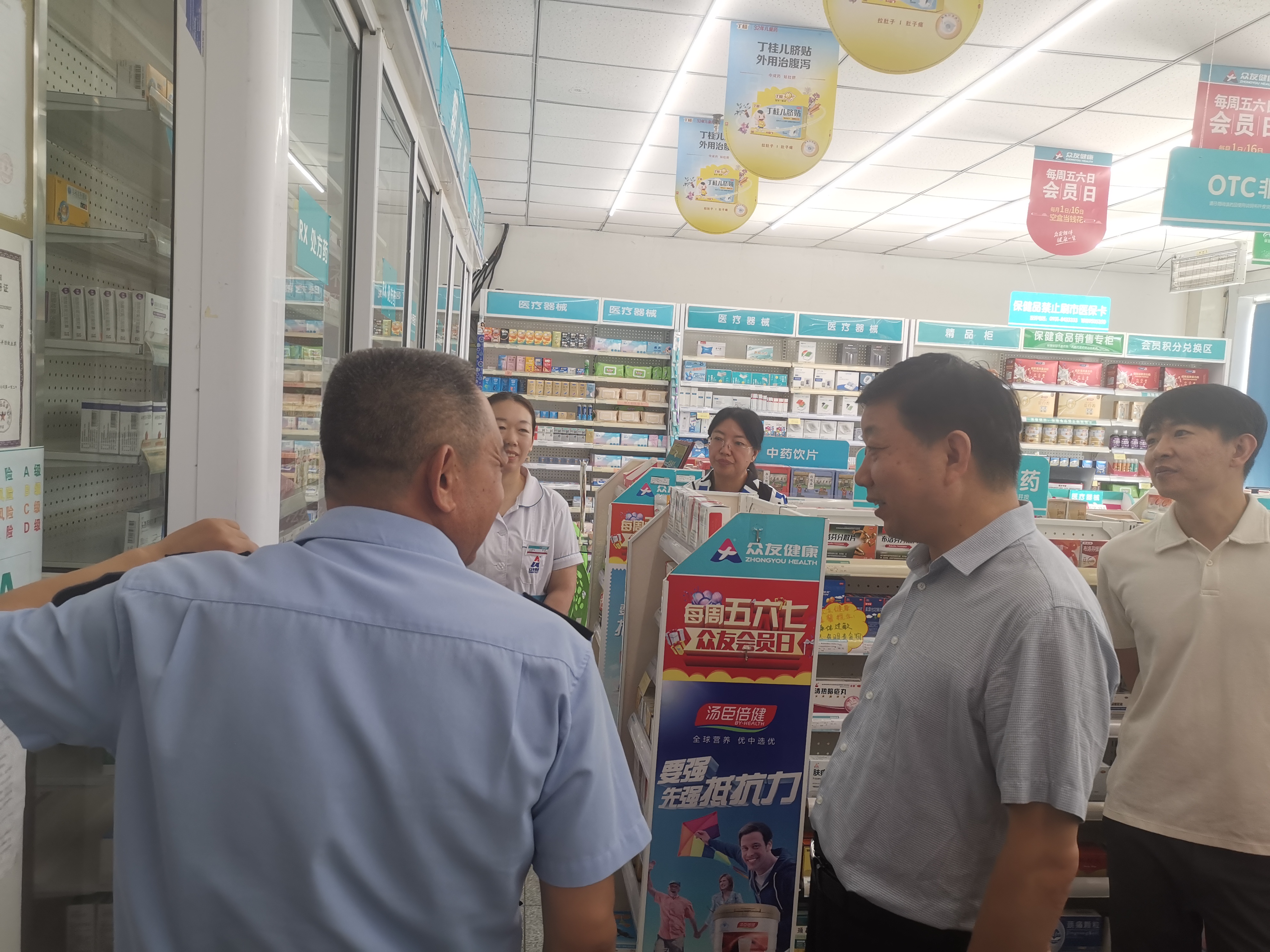 在众友药店,调研组查看了药品经营许可证、执业药师资格证、药品药械进销存及货单,就销售药品是否存在过期失效和损坏变质、药品存放温湿度调控、处方药和甲类非处方药是否凭处方销售等问题进行了深入了解。