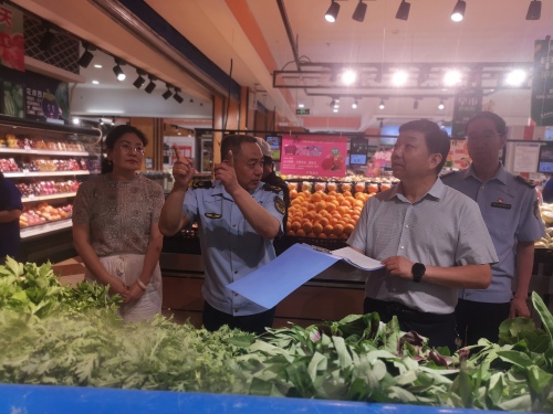 在超市食品区,调研组对超市内的食品进货查验记录制度落实情况进行了详细了解,仔细核对了相关食品的进货渠道,检验检疫证明、储存温度及明码标价情况。