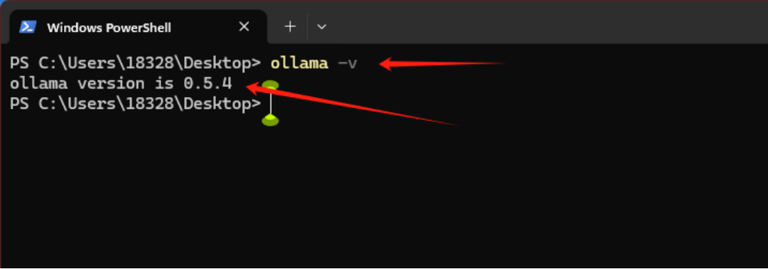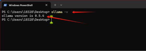 ③ 打开终端执行命令ollama -V查看Ollama版本: