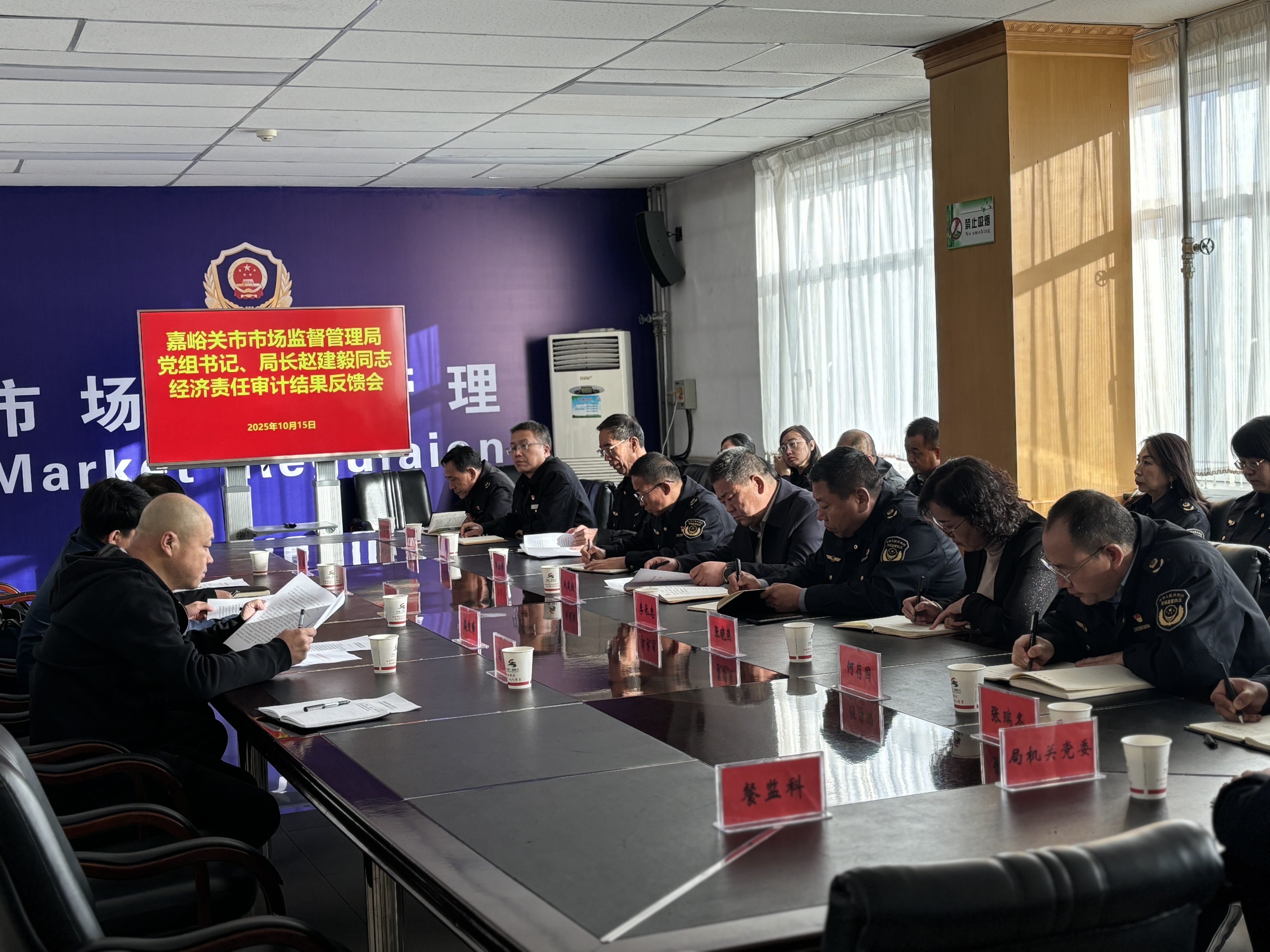 为推动实现经济责任审计工作闭环管理,进一步强化经济责任审计监督质效,做好审计整改“下半篇文章”。2025年10月15日,市审计局会同市纪委监委、市委组织部召开嘉峪关市市场监督管理局主要领导干部经济责任审计结果反馈会。