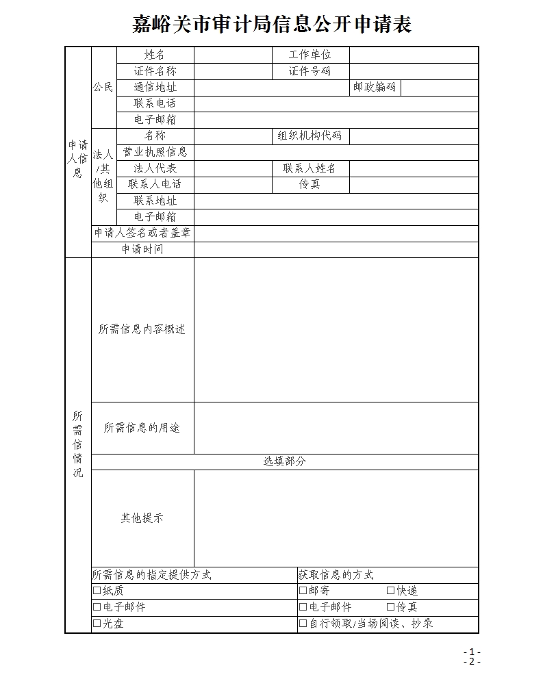 向我局申请获取信息,应当书面填写《政府信息公开申请表》(以下简称《申请表》)。为提高处理效率,申请人对所需信息的描述应尽可能详细,明确信息的提供形式。若有可能,请尽可能提供信息的标题、发布时间、发文字号或者其他有助于明确该信息的提示。
