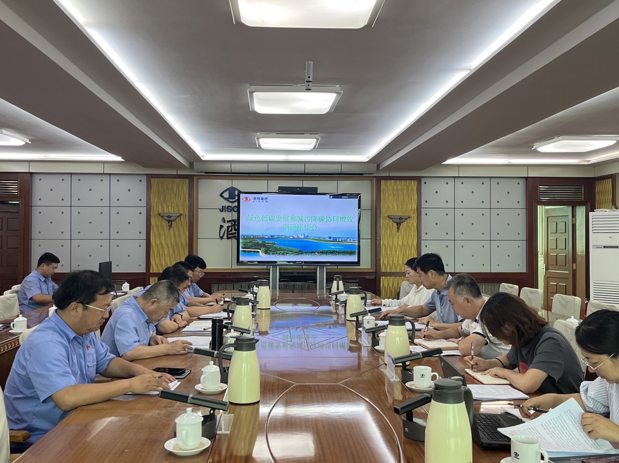 座谈会上,酒钢集团公司汇报了企业碳排放管理现状、主要指标情况及下一步低碳发展思路。调研组对企业在调整产业、能源结构,构建碳资产管理体系等方面取得的成效给予了充分肯定。对钢铁、有色行业纳入碳市场交易履约,以及产品全生命周期碳足迹管理、欧盟碳边境调节机制等工作进行了交流,并就下一步企业如何更好地推动绿色低碳高质量发展提出工作要求。