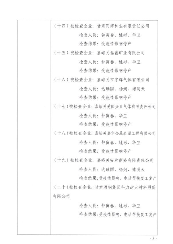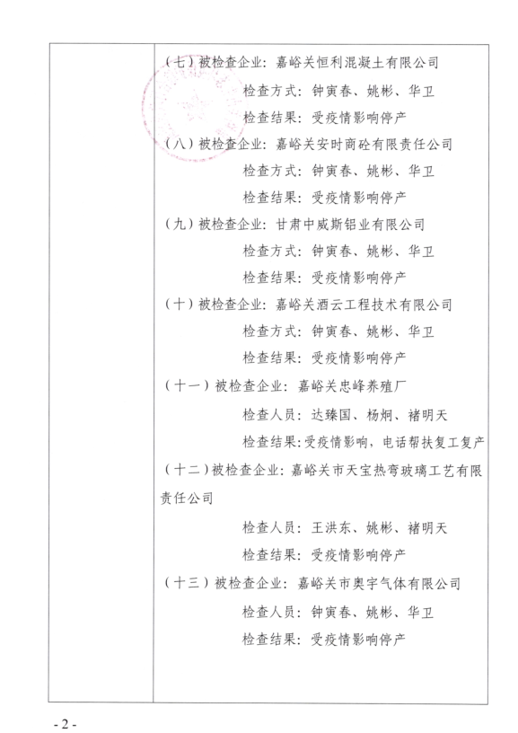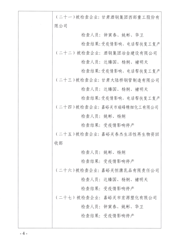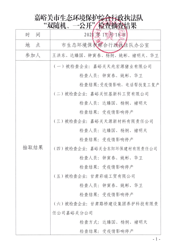 2021年4季度嘉峪关市“双随机、一公开”抽查结果公示表