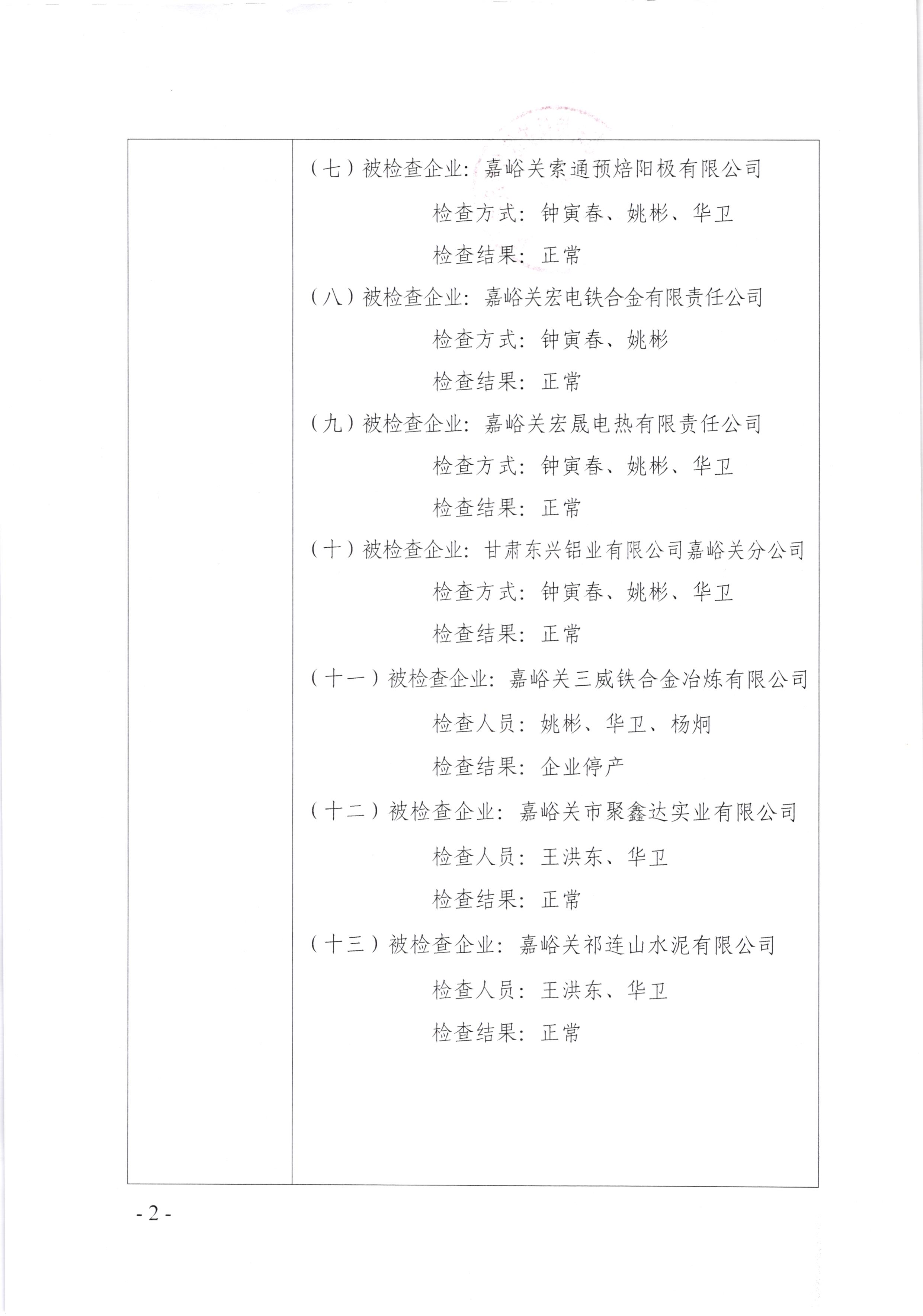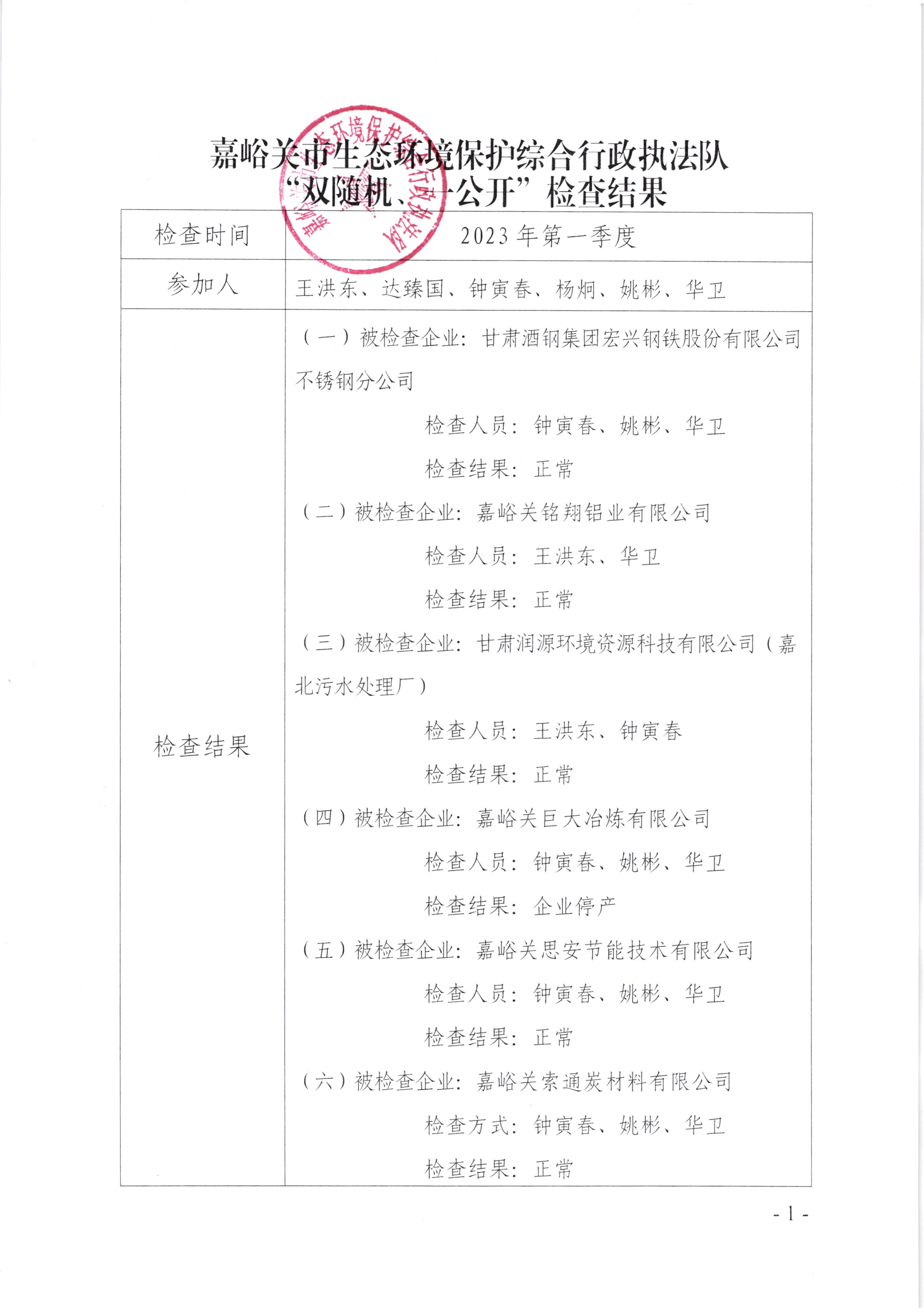 2023年嘉峪关市生态环境局第一季度“双随机、一公开”检查结果公示