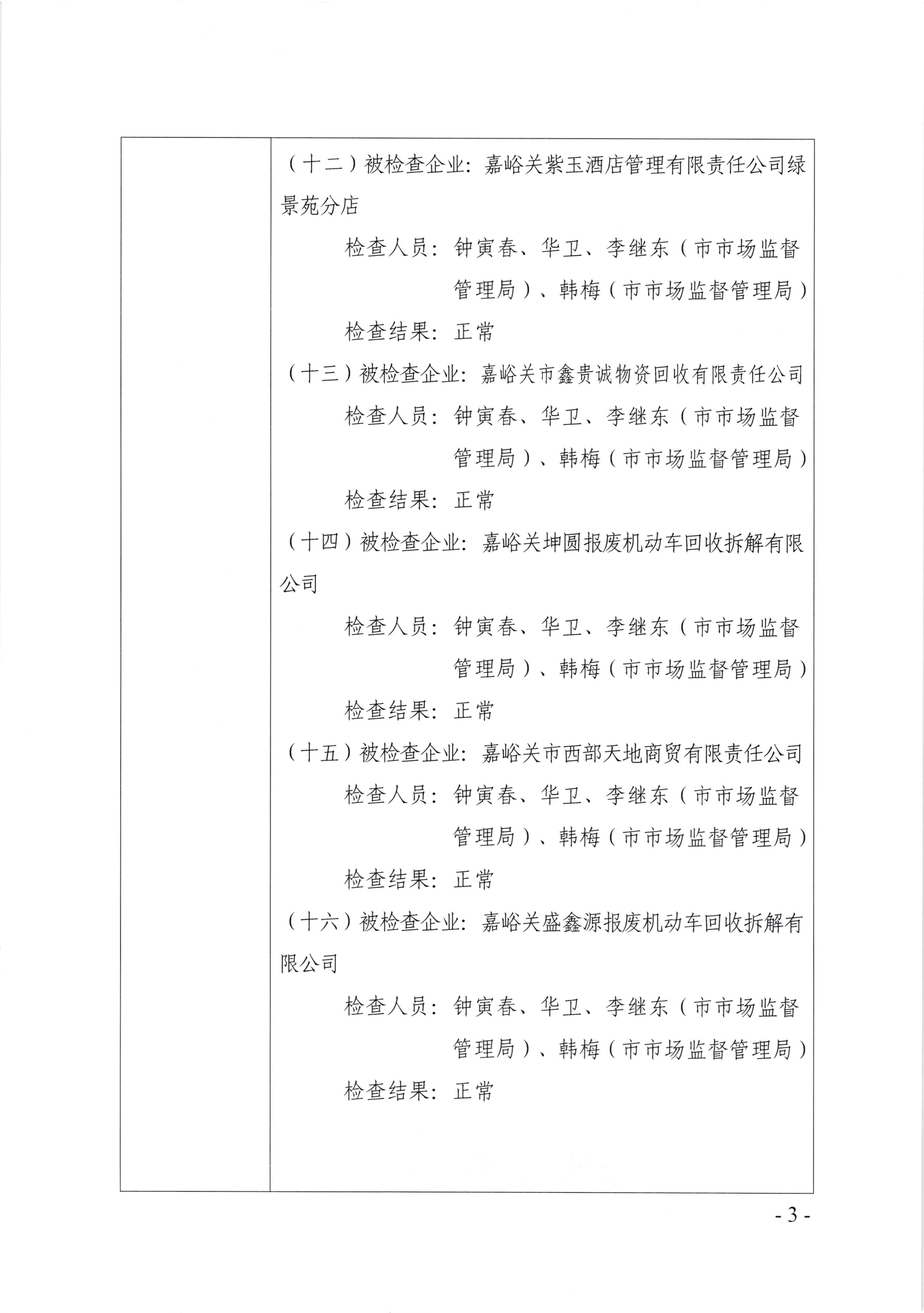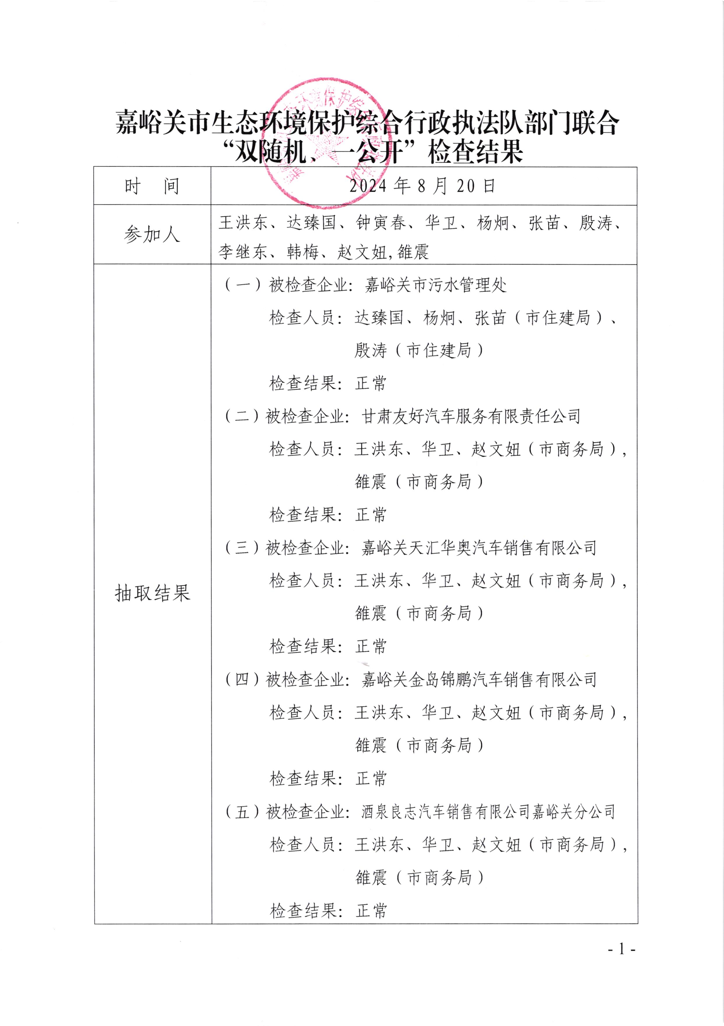 2024年嘉峪关市生态环境局部门联合“双随机、一公开”检查结果