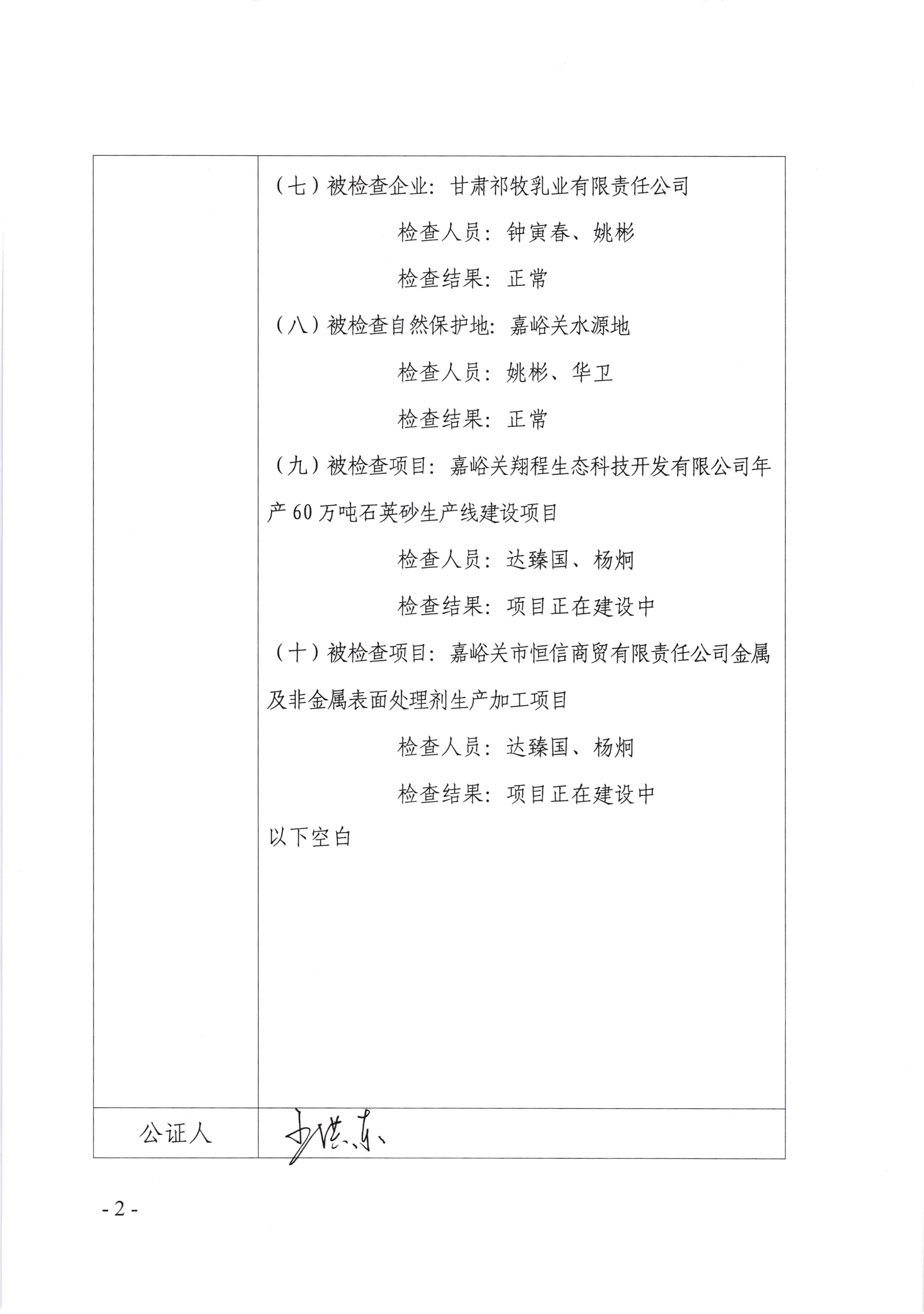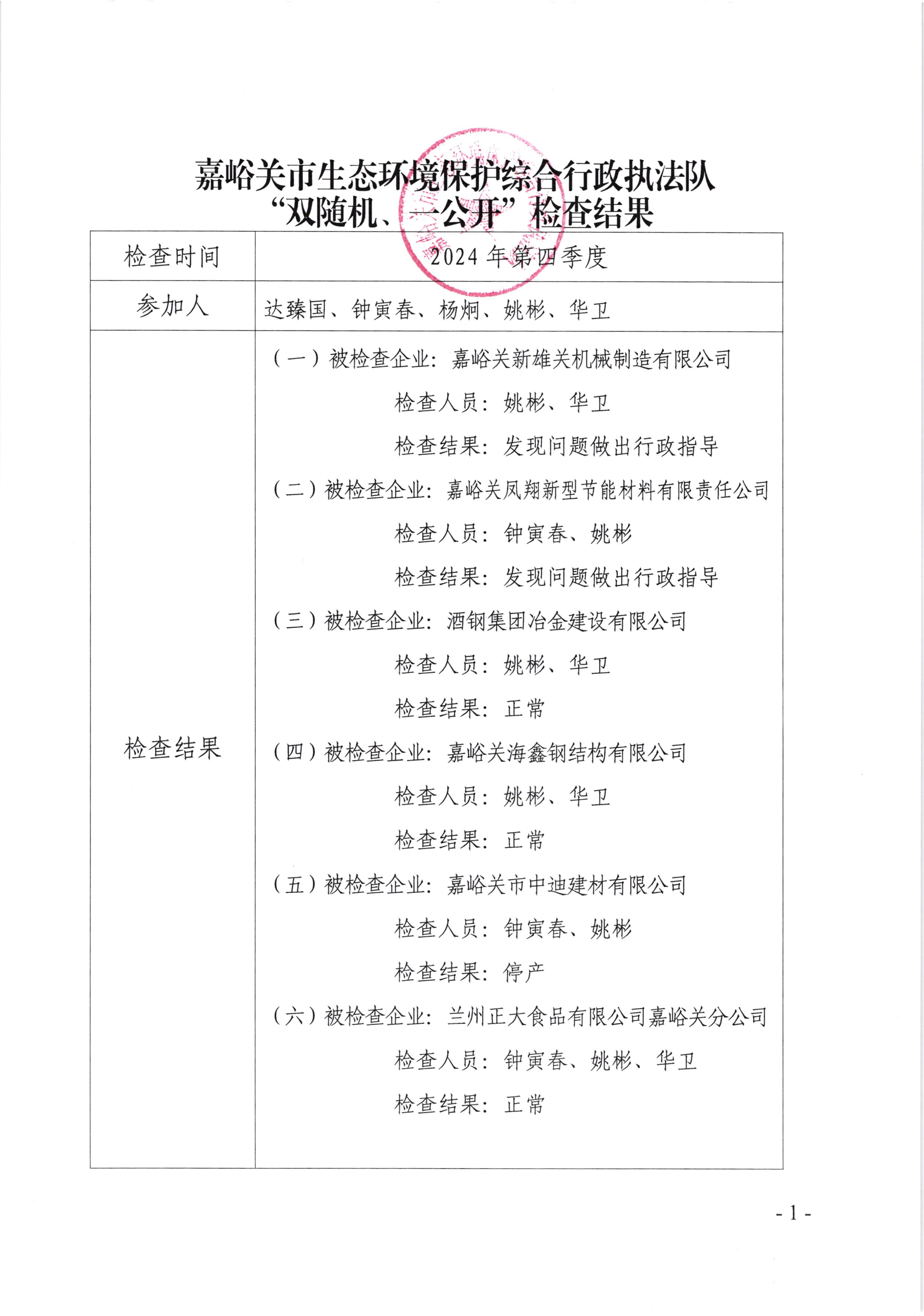 2024年嘉峪关市生态环境局第四季度“双随机、一公开”检查结果