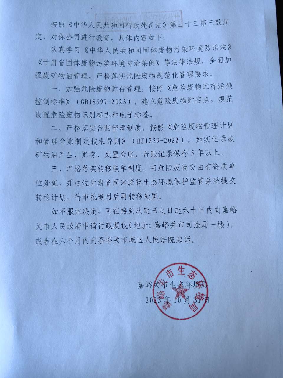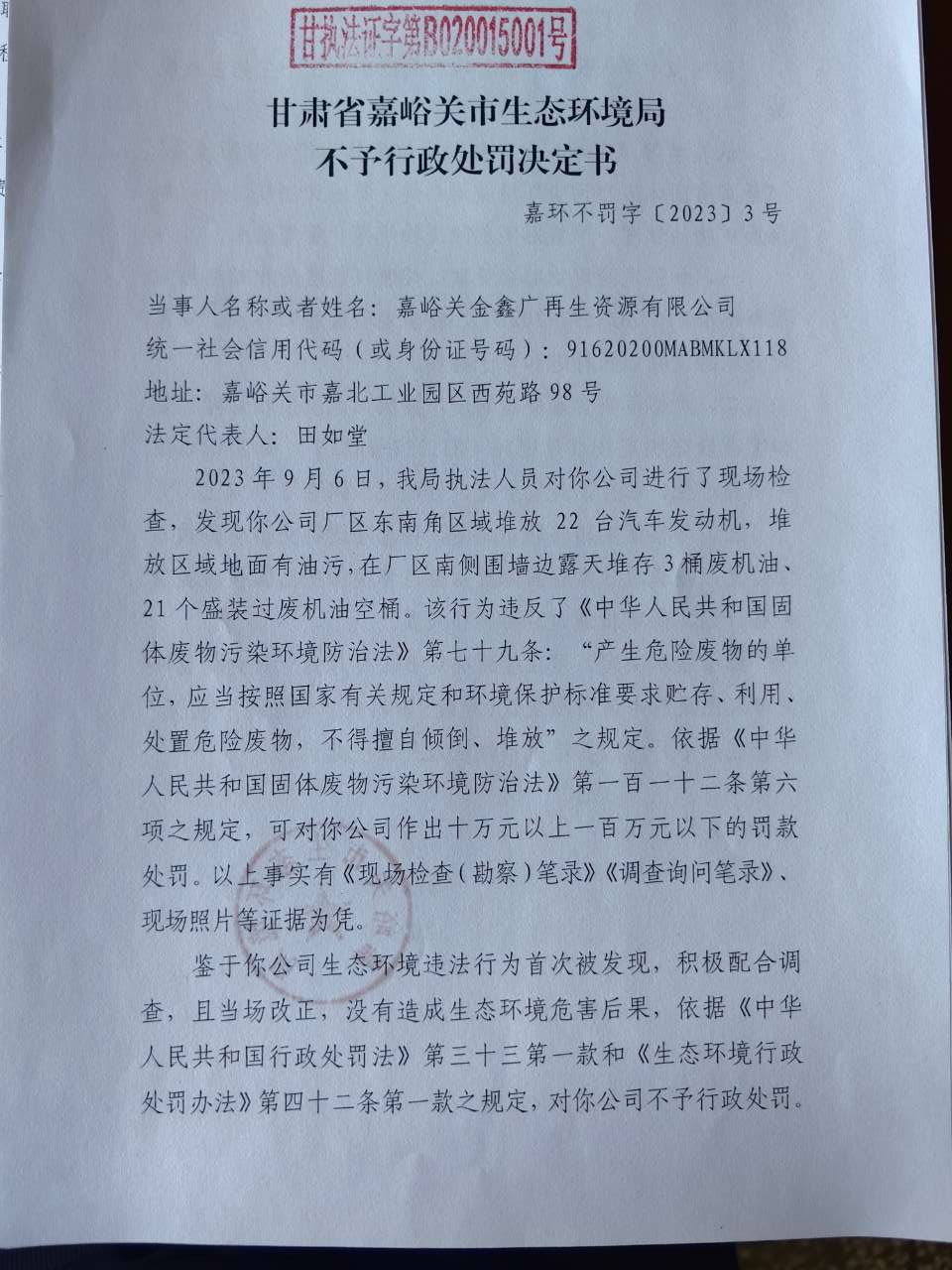 嘉峪关金鑫广再生资源有限公司(嘉环不罚字〔2023〕3号)