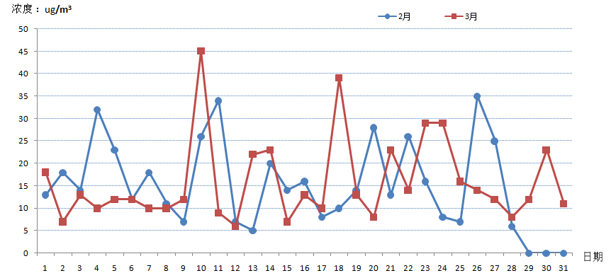 本月我市优良天数17天,优良率56.7%,主要污染物为可吸入颗粒物和臭氧,占比分别为86.7%和6.7%,综合指数3.35。其中,SO2日均值浓度范围为7ug/m3~34ug/m3,均值为14ug/m3,日均值浓度均低于《环境空气质量标准》(GB3095-2012)中二级浓度限值;NO2日均值浓度范围为10ug/m3~28ug/m3,均值为18ug/m3,日均值浓度均低于《环境空气质量标准》(GB3095-2012)中二级浓度限值;CO日均值浓度范围为0.3mg/m3~0.7mg/m3,均值为0.7mg/m3,日均值浓度均低于《环境空气质量标准》(GB3095-2012)中二级浓度限值;O3日均值浓度范围为74ug/m3~124ug/m3,均值为121ug/m3,日均值浓度均低于《环境空气质量标准》(GB3095-2012)中二级浓度限值。