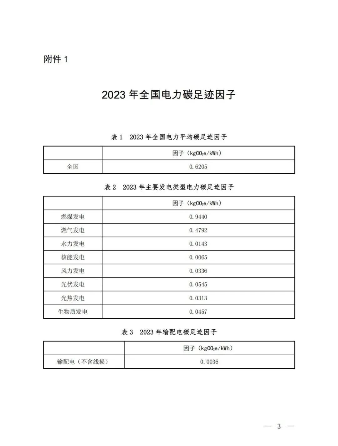 为落实《关于建立碳足迹管理体系的实施方案》相关要求,生态环境部、国家统计局、国家能源局组织中国电力企业联合会等单位计算了2023年燃煤发电、燃气发电、水力发电、核能发电、风力发电、光伏发电、光热发电、生物质发电碳足迹因子和输配电碳足迹因子以及全国电力平均碳足迹因子,供各行业产品核算电力生产和消费产生的碳足迹使用。