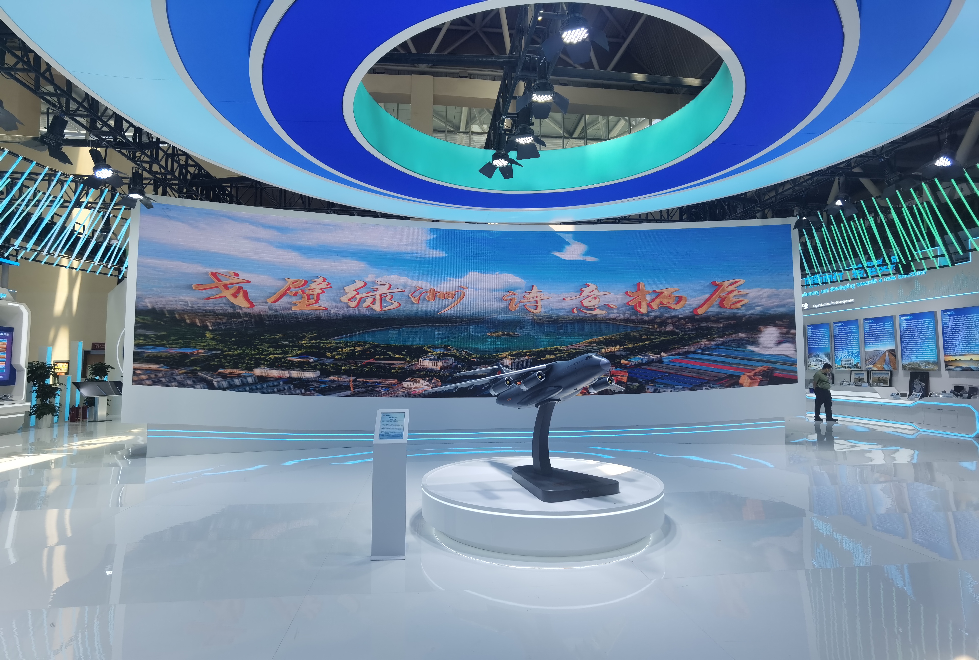 展馆设计精妙融合古典与现代,以灵动曲线织就时空交织之韵,映射嘉峪关历史之幽邃与科技之辉煌。展馆整体以“工业蓝”为主色调,融合金属、数字与生态元素,体现工业与绿色发展的平衡。通过科技与文化无缝交织,巧妙运用声光电等多媒体技术,打造沉浸式体验。