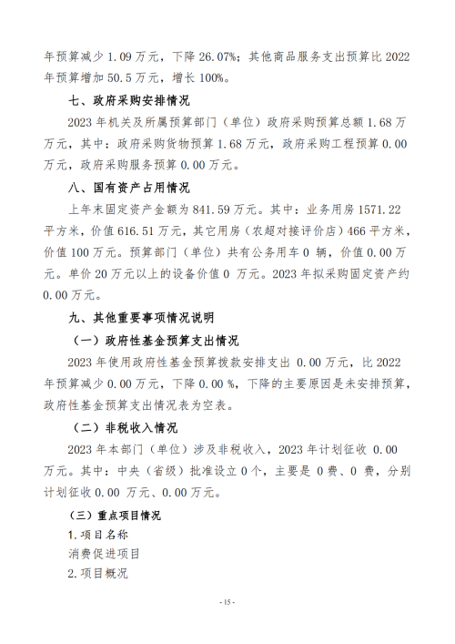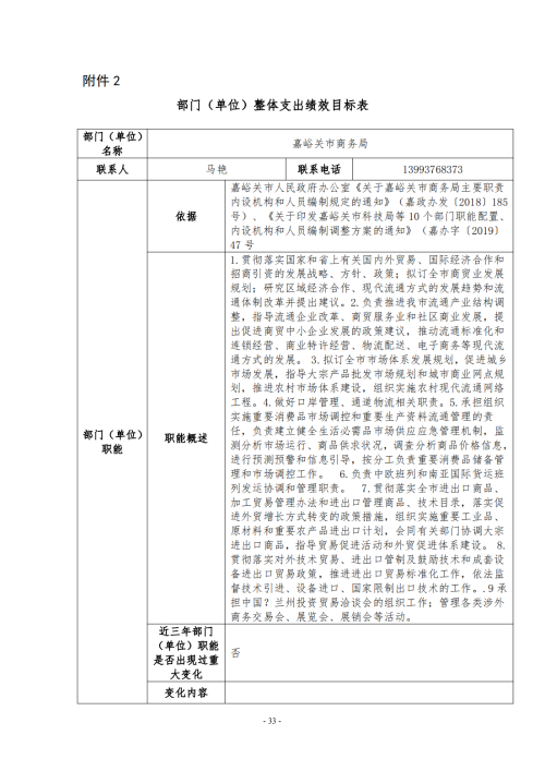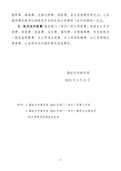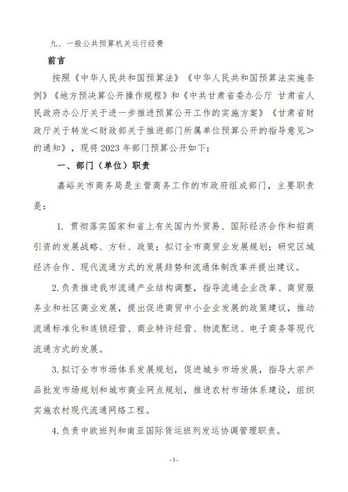 嘉峪关市商务局2023年部门预算信息公开情况说明