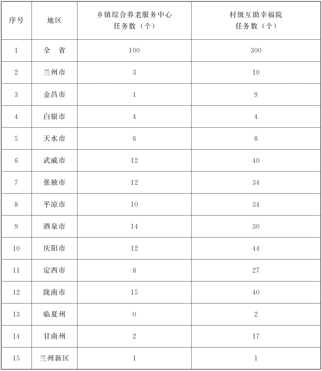 通过提升改造方式,在全省建设100个乡镇综合养老服务中心和300个村级互助幸福院,建成后全省乡镇(街道)综合养老服务中心达到420个,村级互助幸福院达到600个,进一步提升农村养老服务能力。