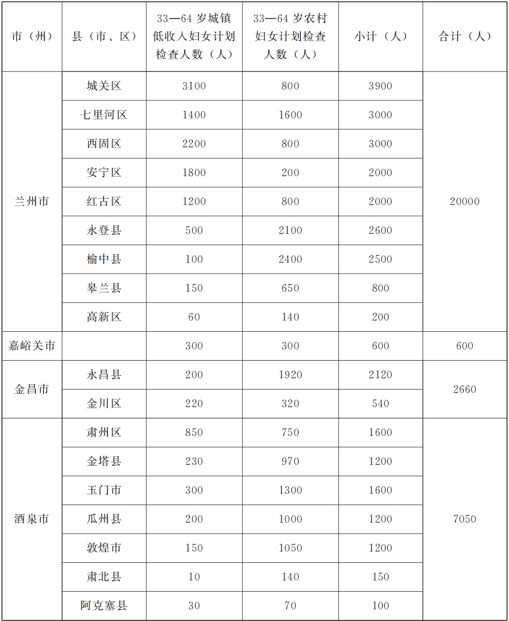 20万名城乡妇女“两癌”免费检查任务分解计划表