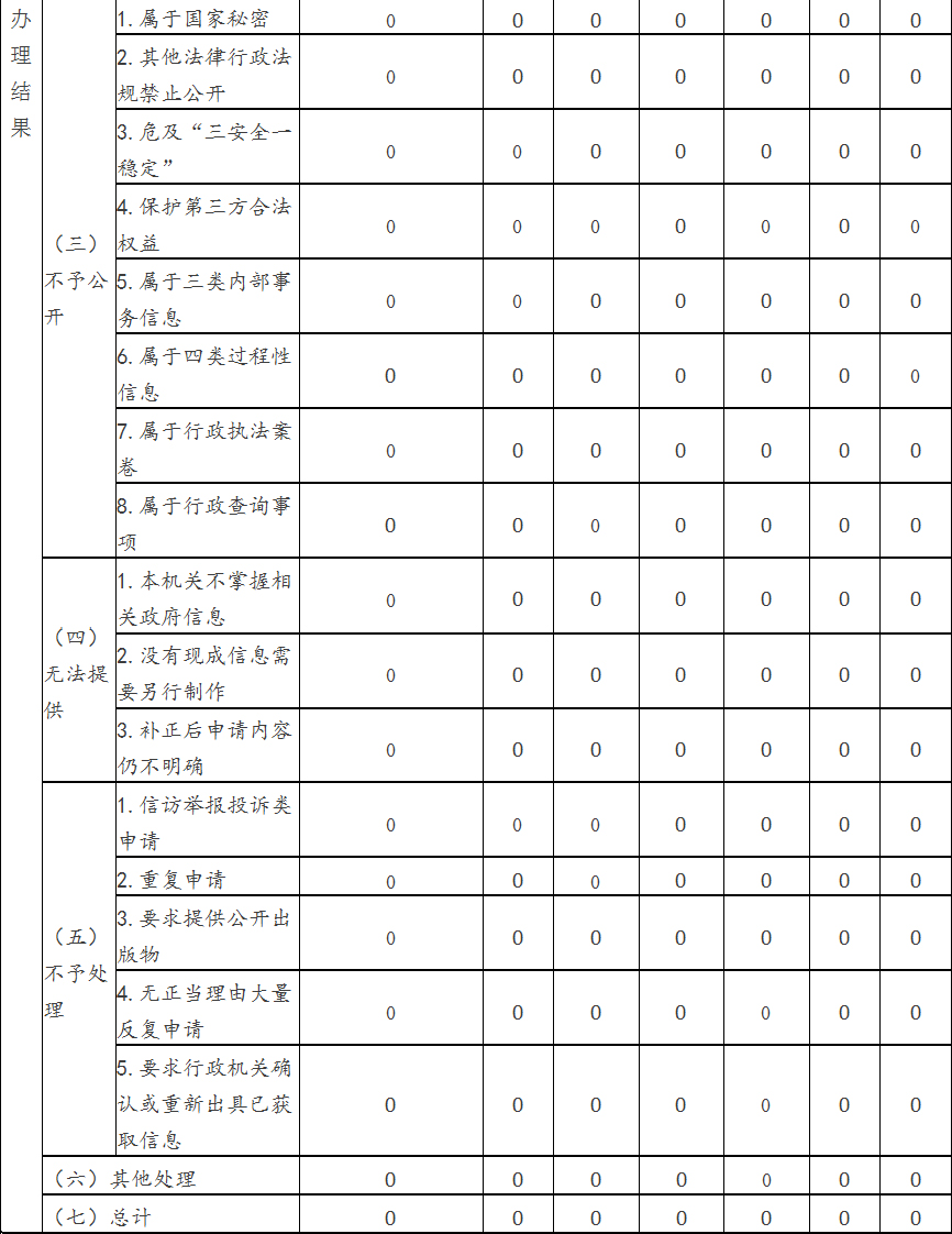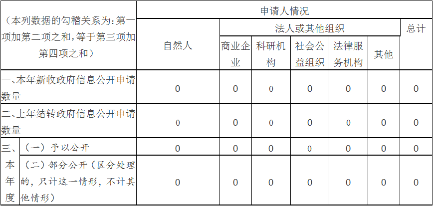 (四)其他信息公开情况。2019年,市商务局未收到政府信息公开申请;未向公民、法人和其他组织收取任何政府信息公开费用的情况。2019年,未发生针对本部门有关政府信息公开事务的行政复议案、行政诉讼案件和举报申诉案件。