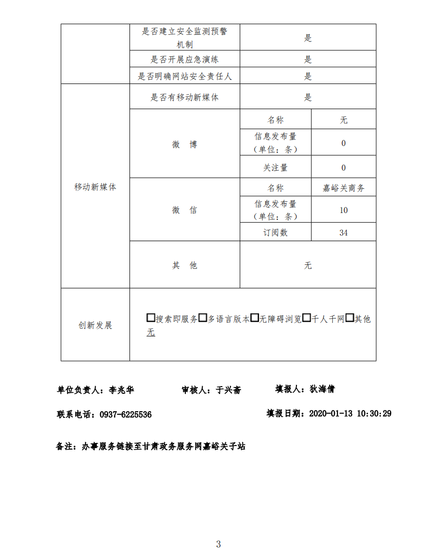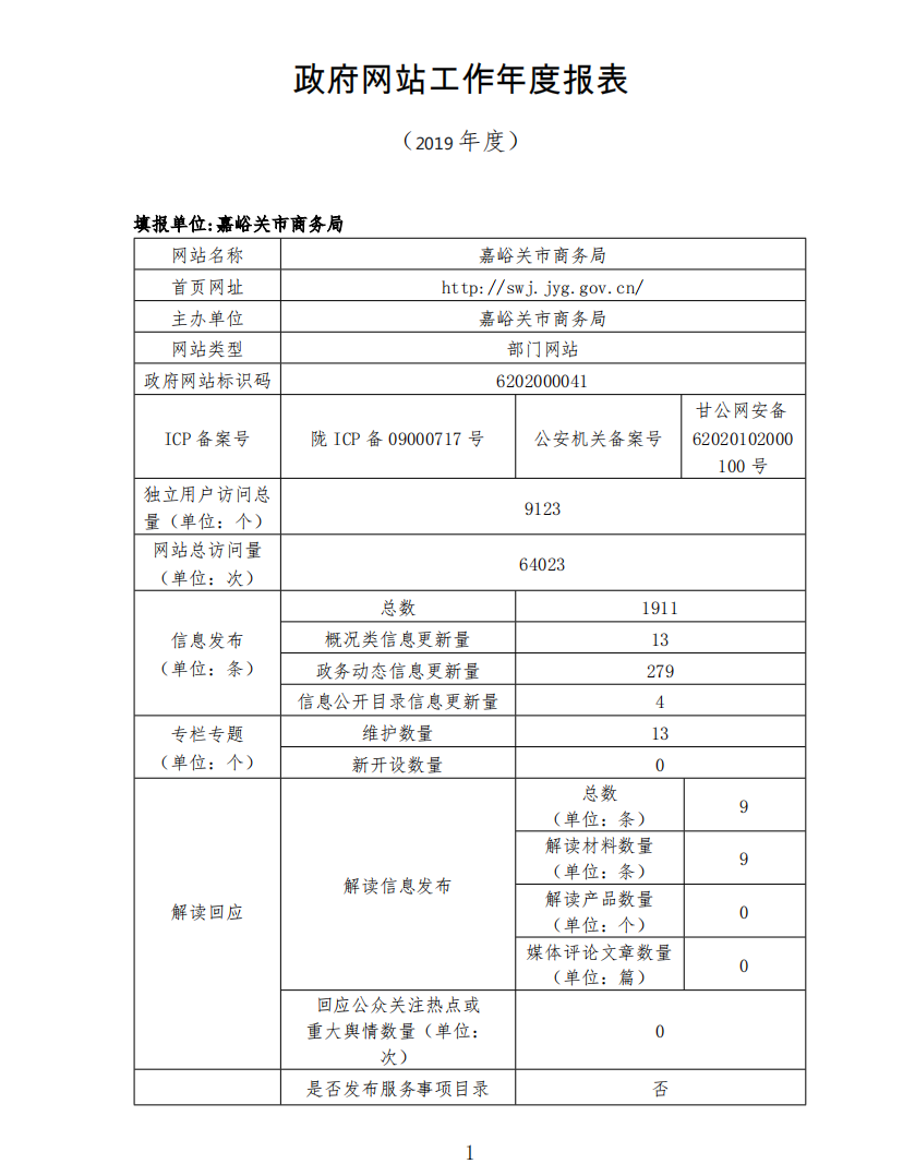 嘉峪关市商务局政府网站工作年度报表(2019年度)