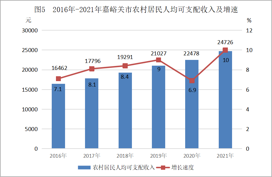 农村居民人均可支配收入24726元,比上年增长10%;农村居民人均生活消费支出18136元,增长10.3%;农村居民人均食品烟酒消费支出占人均生活消费支出的比重为30%。