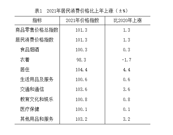 物价:全市居民消费价格比上年上涨1.3%。商品零售价格比上年上涨1.3%。
