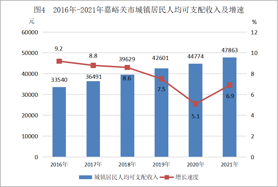 人民生活:全年城镇居民人均可支配收入47863元,比上年增长6.9%;城镇居民人均生活消费支出33263元,增长7.8%;城镇居民人均食品烟酒消费支出占人均生活消费支出的比重为32%。