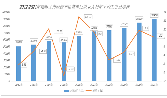 2021年嘉峪关市城镇非私营单位就业人员年平均工资92408元