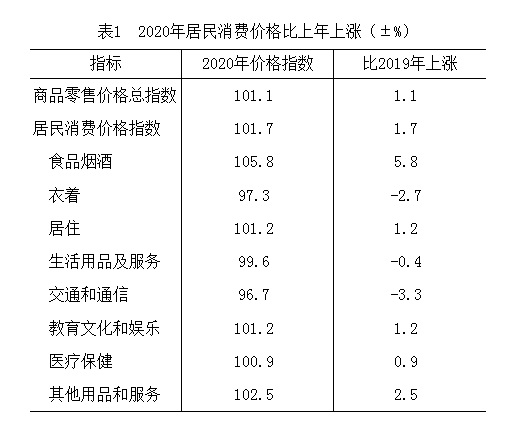 物价:全市居民消费价格总水平比上年上涨1.7%。商品零售价格总水平比上年上涨1.1%。