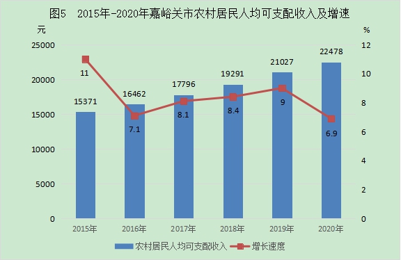农村居民人均可支配收入22478元,增长6.9%;农村居民人均生活消费支出16447元,增长5.6%;农村居民食品烟酒消费支出占消费性支出的比重为30%。